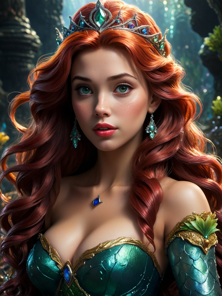 - artsy princess ariel little mermaid inspired artwork text to image interpretation ariel in an artistic style artistic rendition of princess ariel little mermaid transformed into art artwork resembling princess ariel artistic portrayal of the mermaid princess text to image creative challenge magical artistic interpretation of ariel