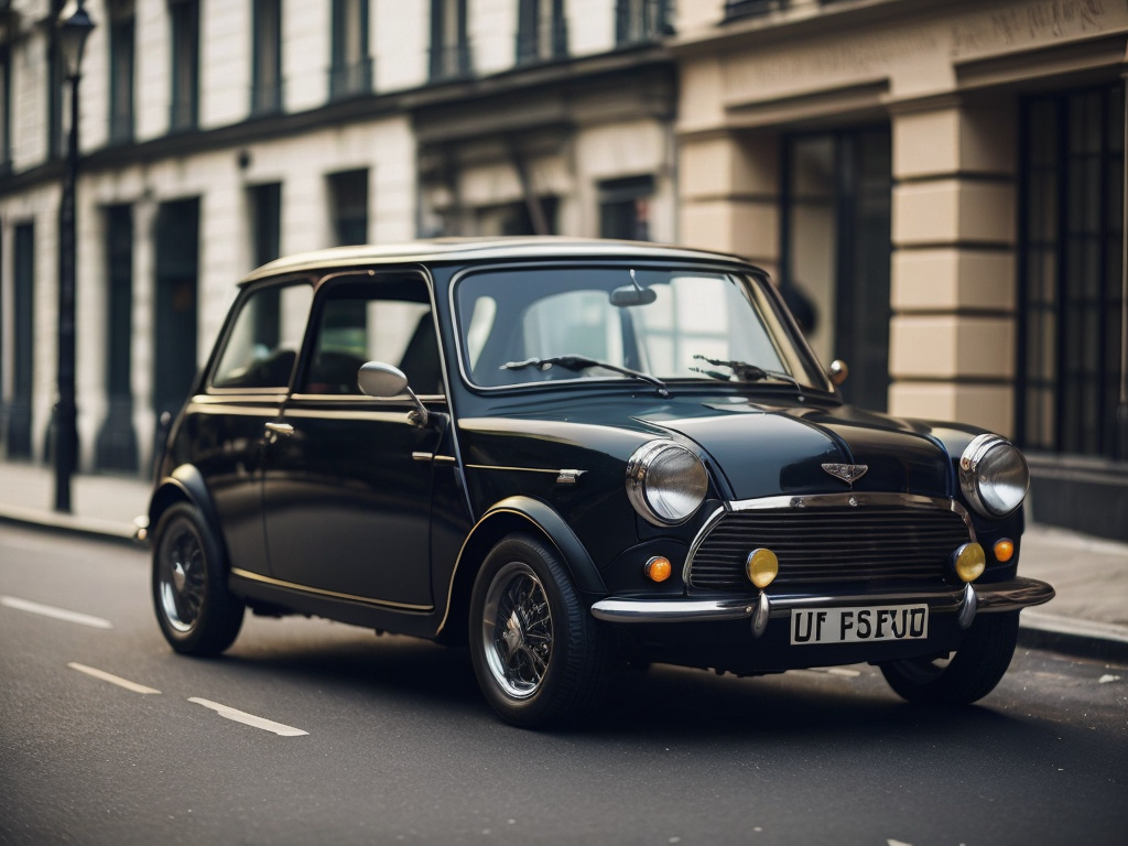- black mini austin mini classic car 1970s paris city life vintage automobile travel urban aesthetics