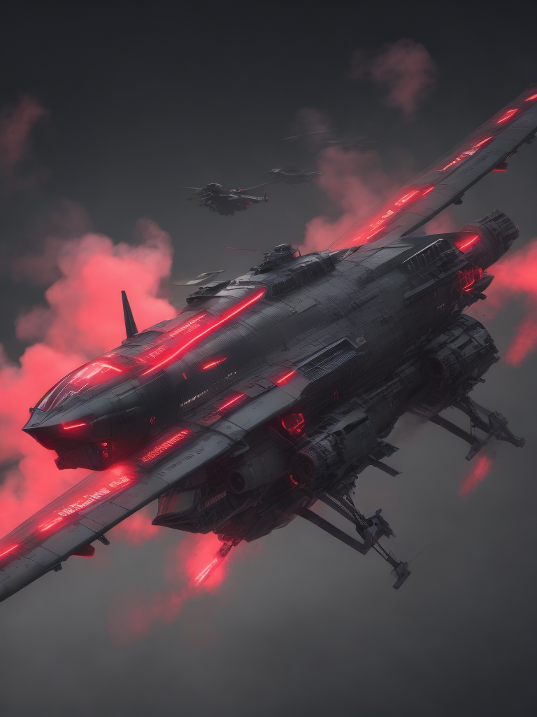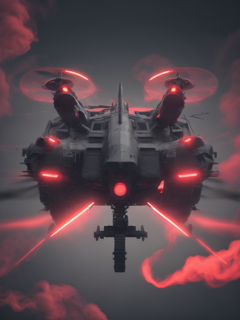 - black drone cyber drone military drone red smoke background futuristic technology shadowy atmosphere high tech warfare modern warfare airborne weaponry dystopian future
