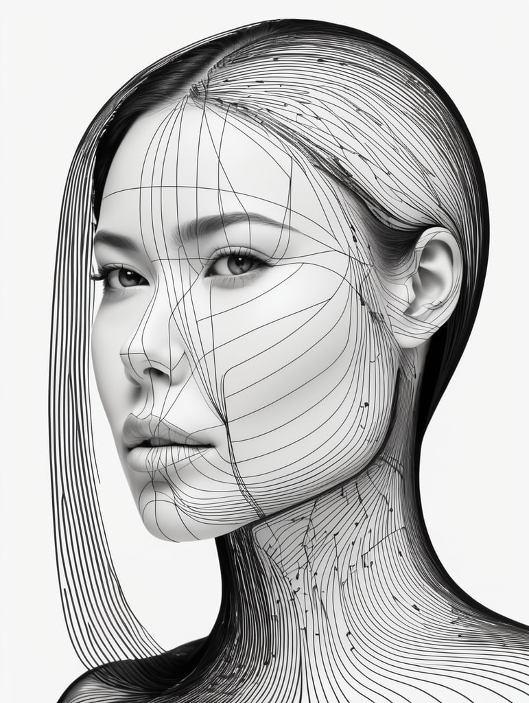 - black and white art minimalist profile drawing contemporary line art abstract face sketch thin line portrait women's profile illustration monochrome artwork graphic outline of a woman's face centralized line composition symmetrical profile image