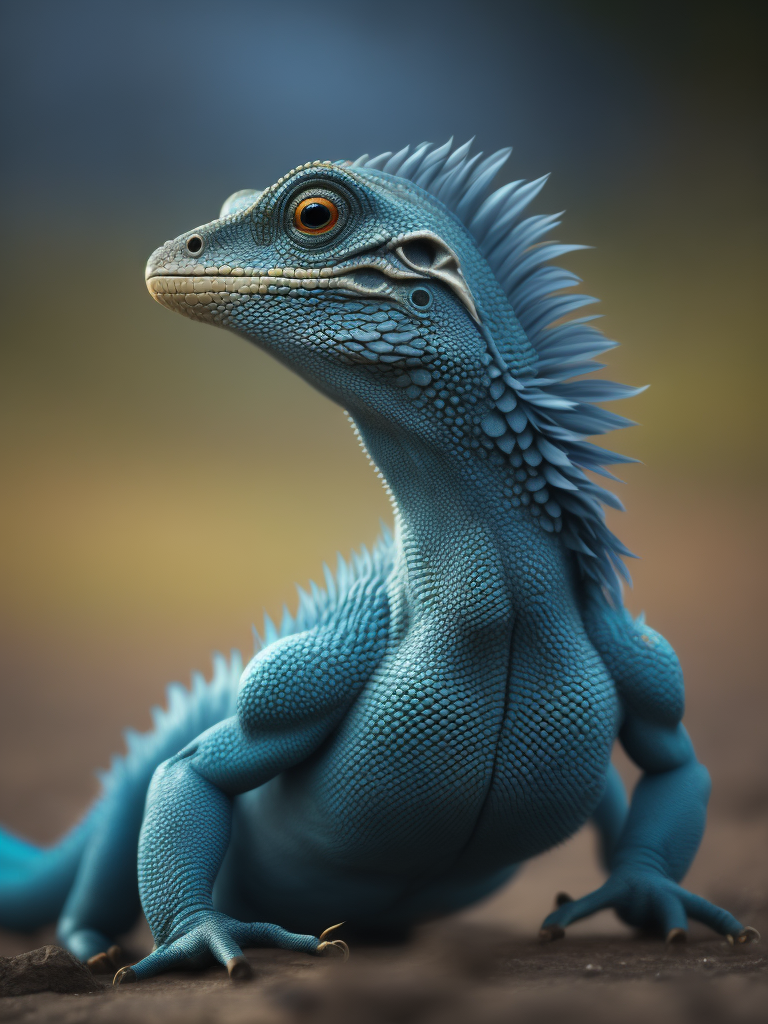 Blue feathered lizard, Vibrant colors, Depth of field, Incredibly high detail, Blurred background