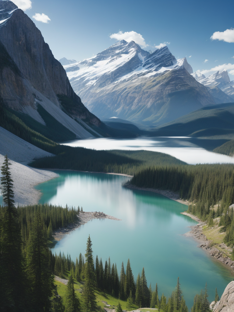 british columbia, surrounded by mountains and nature, beautiful lakes and rivers, volumetric lighting, photorealistic, insanely detailed and intricate, canadian rocky mountains, ultra hd, matte painting, radiant light rays, highres, highly detailed, concept art, Aesthetic, contrast light