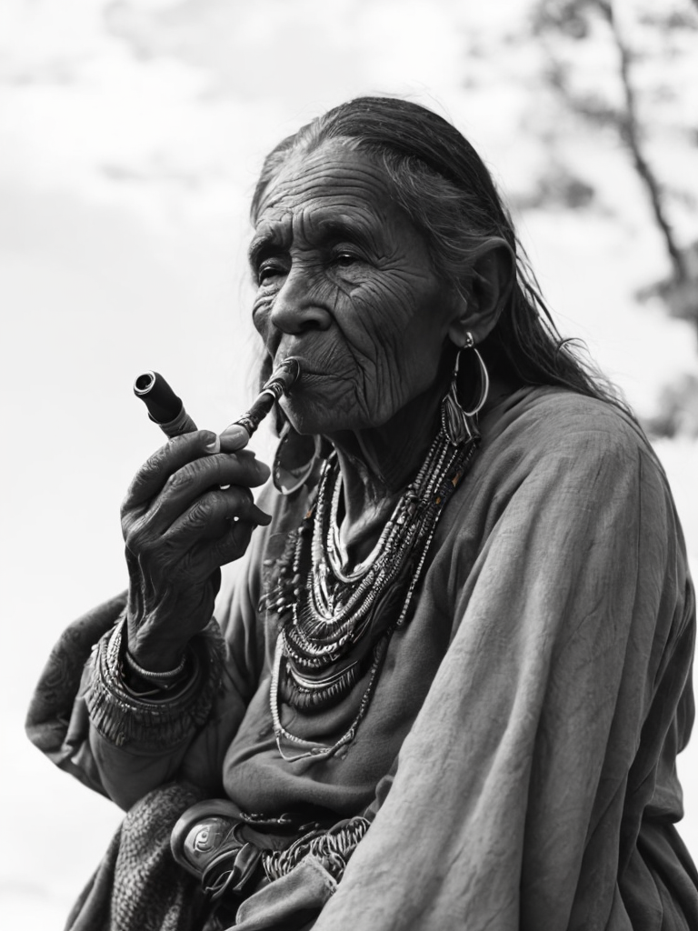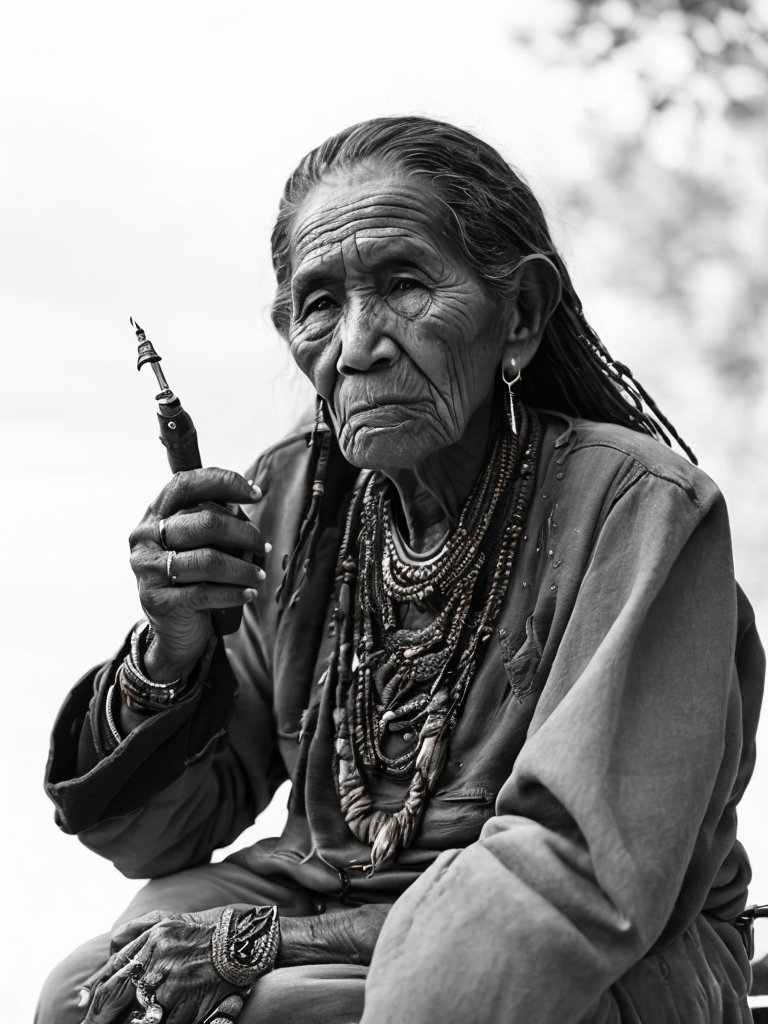 Canada's First Nations people, rare historical photo, black and white photography, a old woman smoking a pipe, redskin, native Americanshttps://lumenor.ai/terms-of-service/https://lumenor.ai/ai-generated-images-gallery/hlGjjwxMWg/lumenor AIlumenor AI