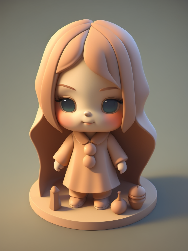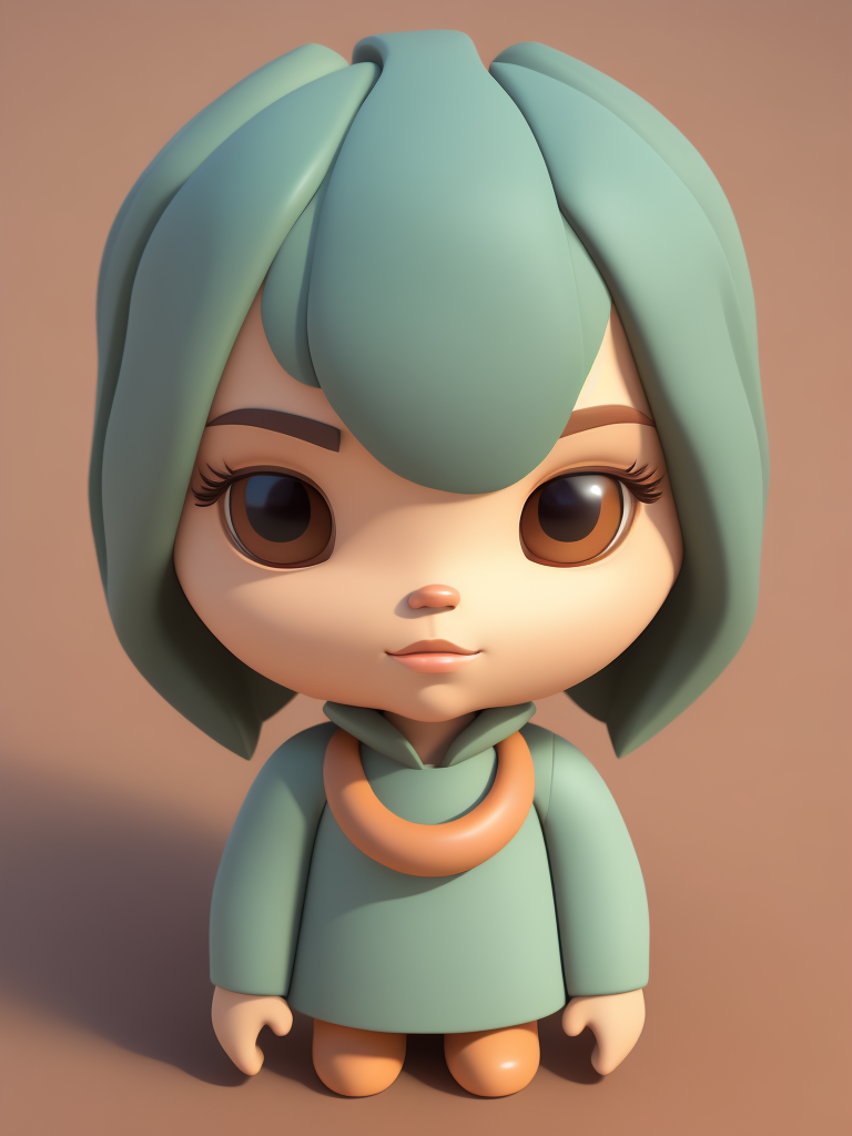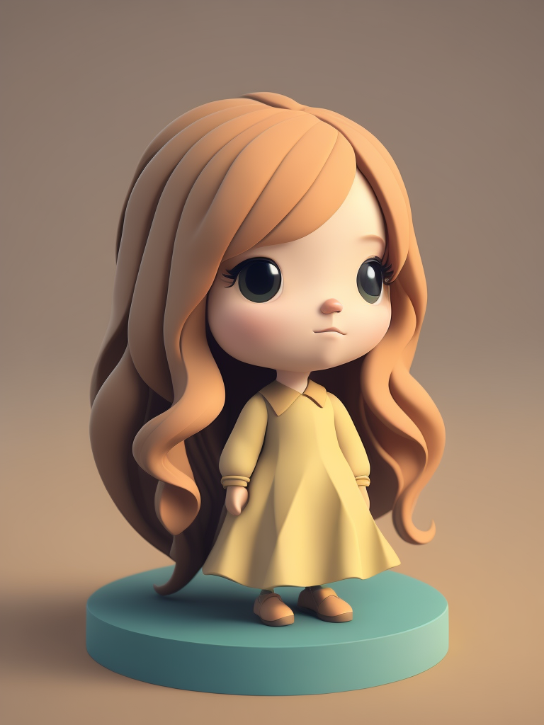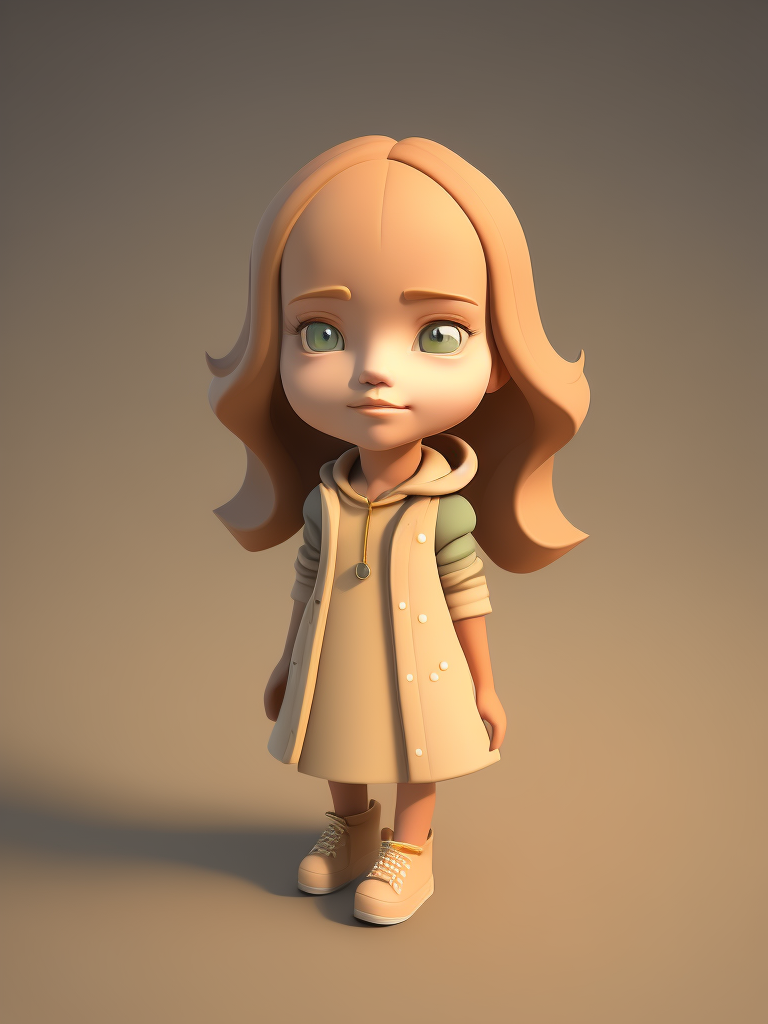 Centered, very cute, isometric view, unique clay 3d icon curved low poly, a girl, 100 mm, Pastel colors, 3d blender render, Neutral blur background, Centered, matte clay, Soft shadows, Cute, pretty, curves