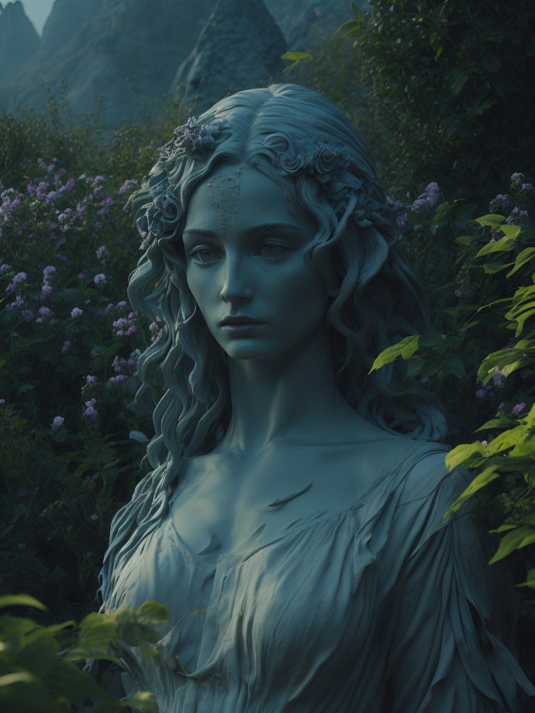 - classical greek landscape marble statue realistic flowers magical flowers cinematic imagery hyperrealistic pre raphaelite style greek mythology ancient architecture artistic representation