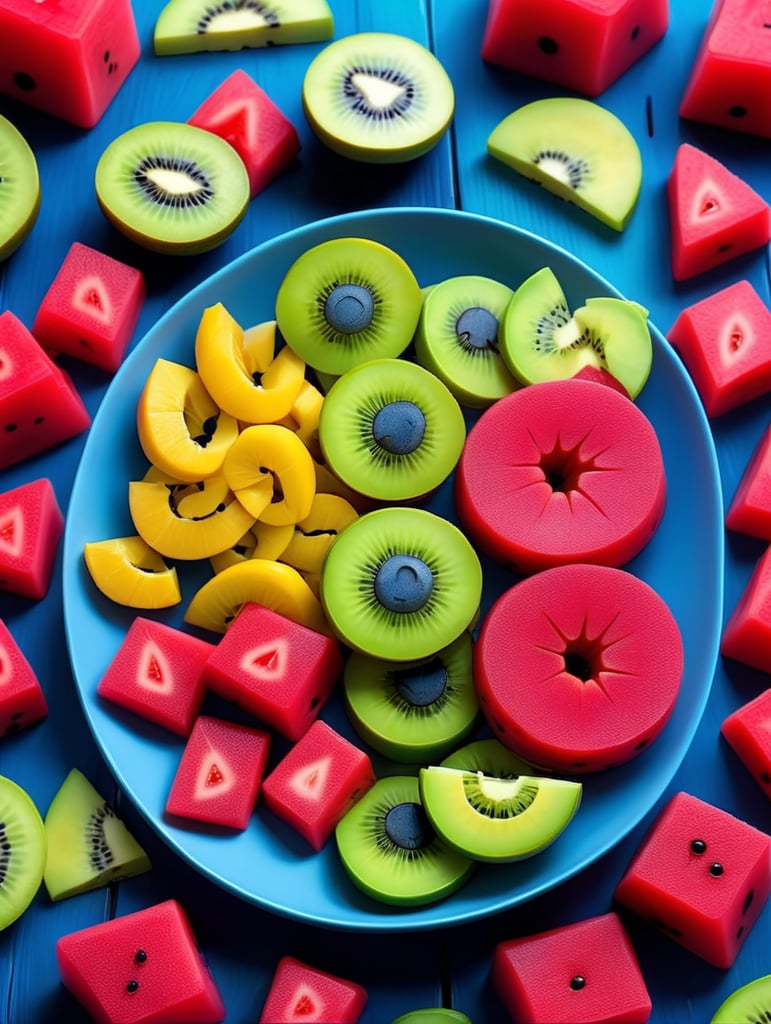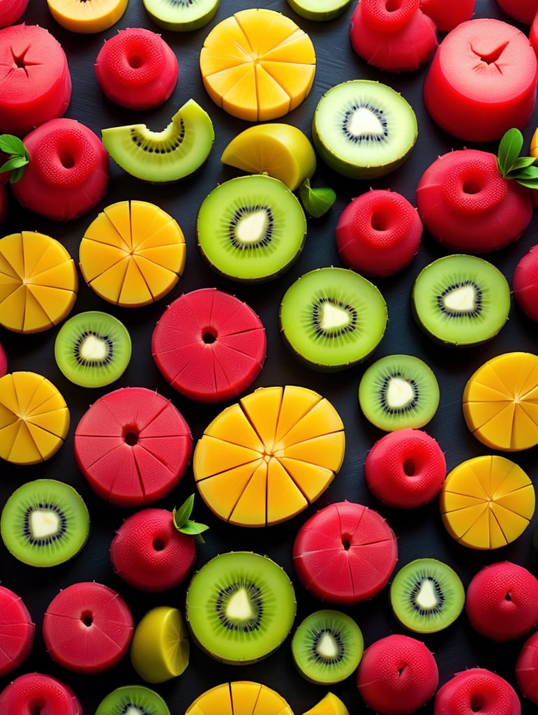Colorful sliced fruit pieces, top view, watermelon, dragon fruit, kiwi, strawberryhttps://lumenor.ai/terms-of-service/https://lumenor.ai/ai-generated-images-gallery/hFlThnP4Wd/lumenor AIlumenor AI