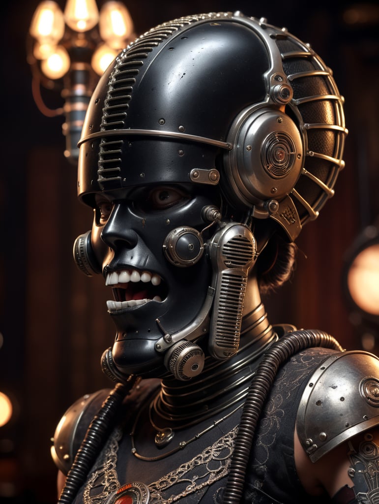 create a character with a vintage microphone head and a rocker dress