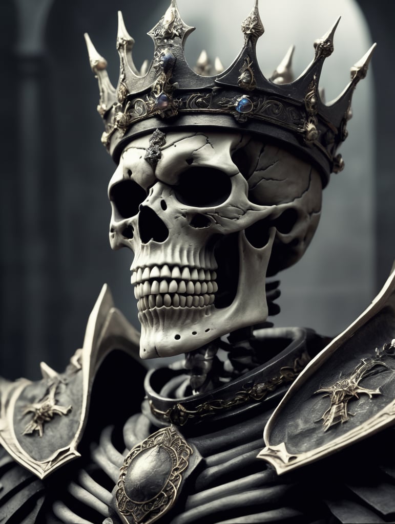 - dark fantasy skeleton king undead monarch macabre royalty gothic horror deathly power haunting presence sinister majesty grim monarchy malevolent sovereign