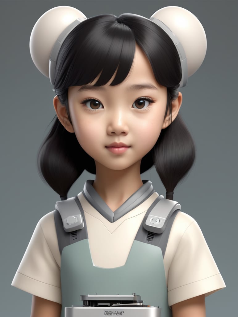 create an ai generated vector image of a very cartooned young Asian girl that is a 3d printer