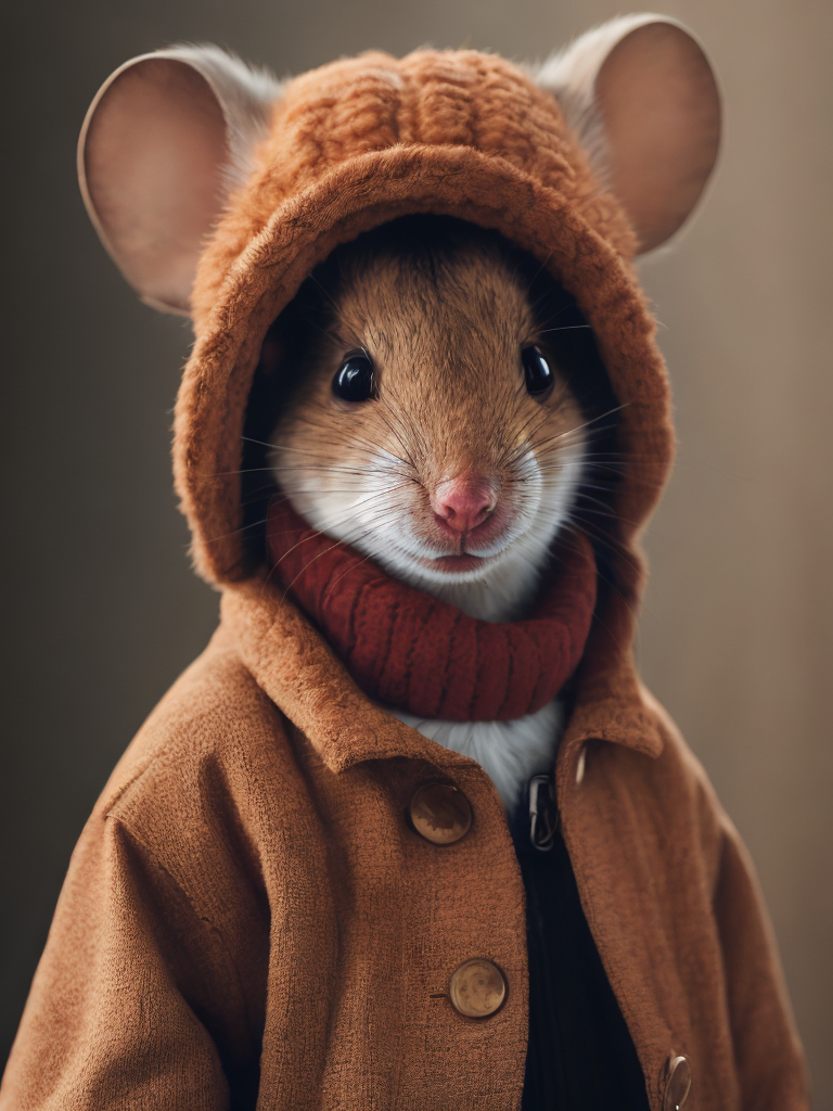 Cute mouse in winter wearing jacket and hat, in the style of reylia slaby, ben wooten, terracotta, colorful faunahttps://lumenor.ai/terms-of-service/https://lumenor.ai/ai-generated-images-gallery/hchQbN3h87/lumenor AIlumenor AI