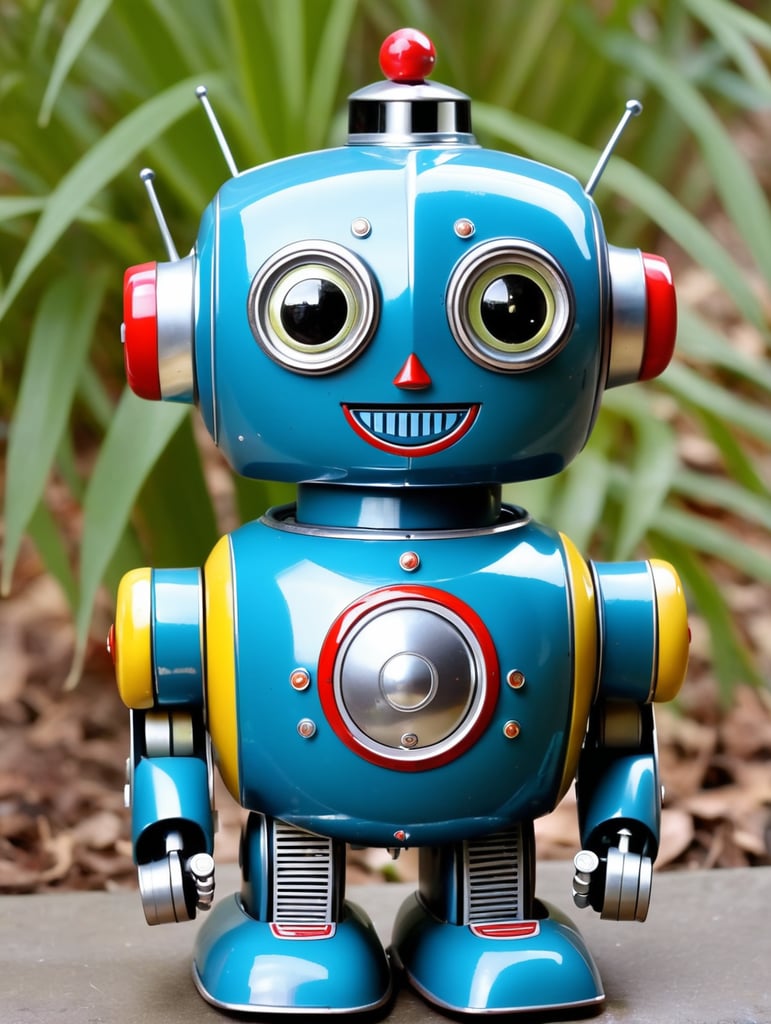 - cute robot toy robot tin style vintage robot 1950s inspired retro robot adorable toy nostalgic design quirky robotic collectible item