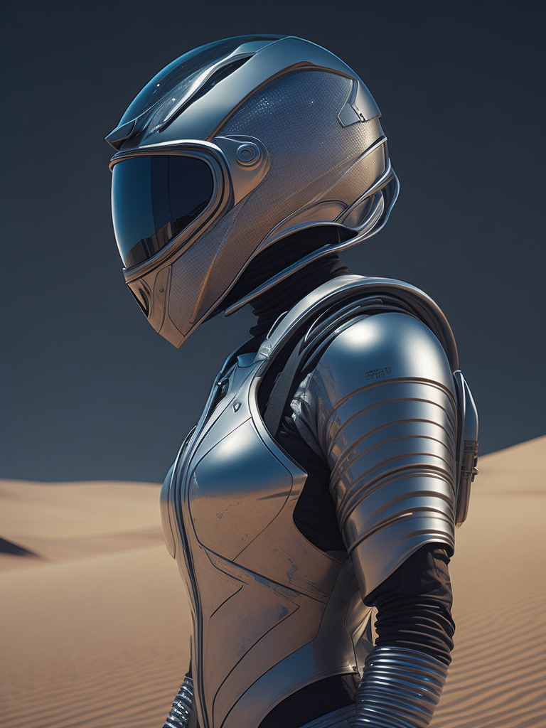 - cyberpunk futuristic helmet reflections desert photorealistic hyperdetailed dune atmosphere technology