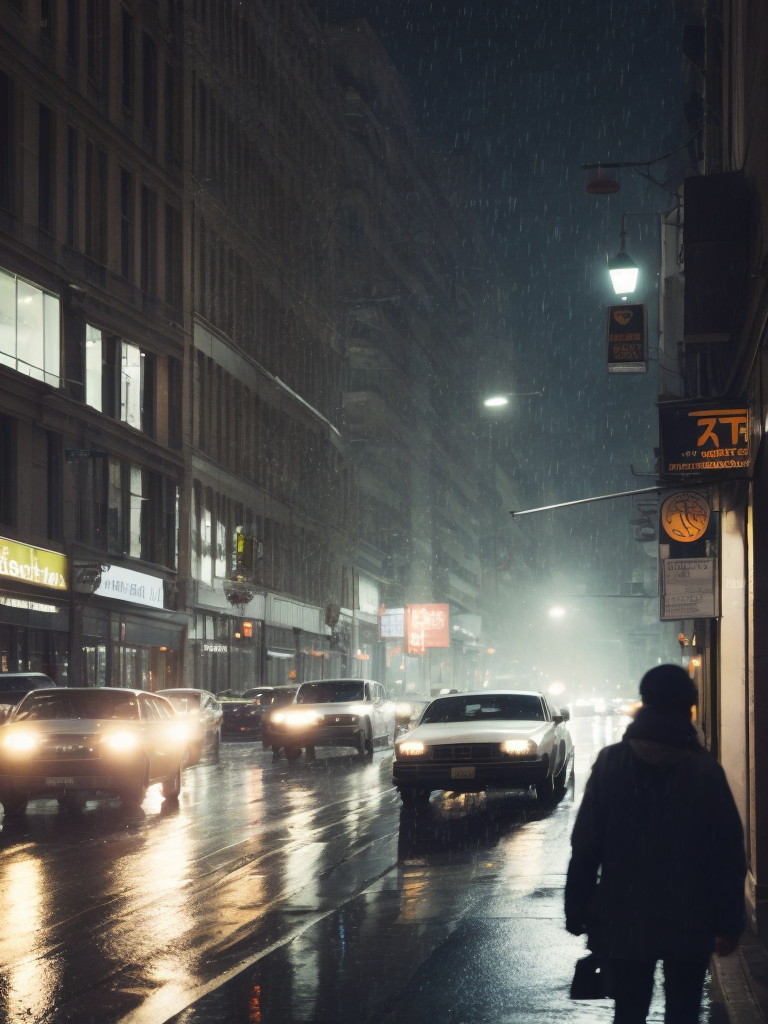 - dark city rainy scene hustle and bustle 1980s nostalgia traffic chaos realistic urban scape window backdrop newspaper booth city life rainy day rush