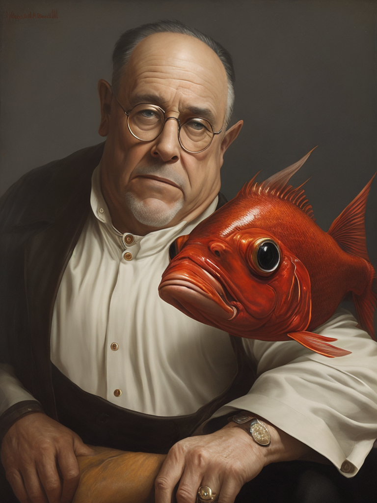 - demonic red fish red horns painting norman rockwell hyper realistic photorealistic highly detailed art fish horror