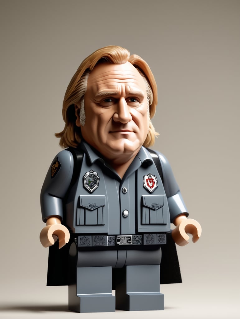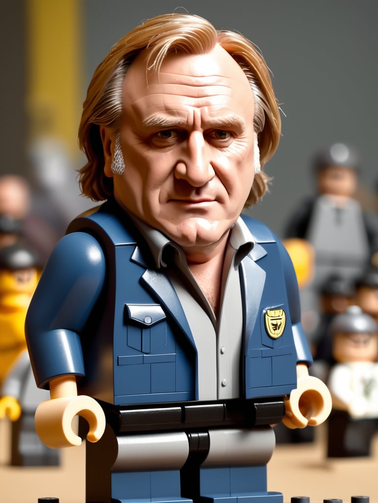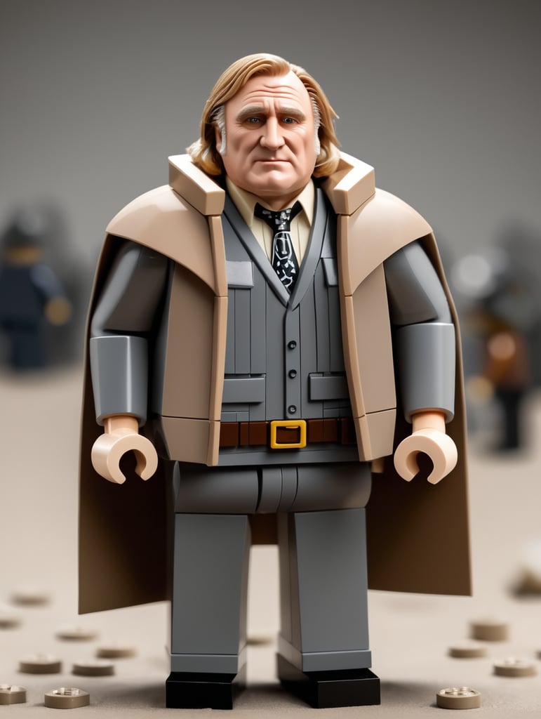 - depardieu lego character actor transformation lego creation celebrity makeover text to image experiment lego art famous personality as lego digital creativity visual representation