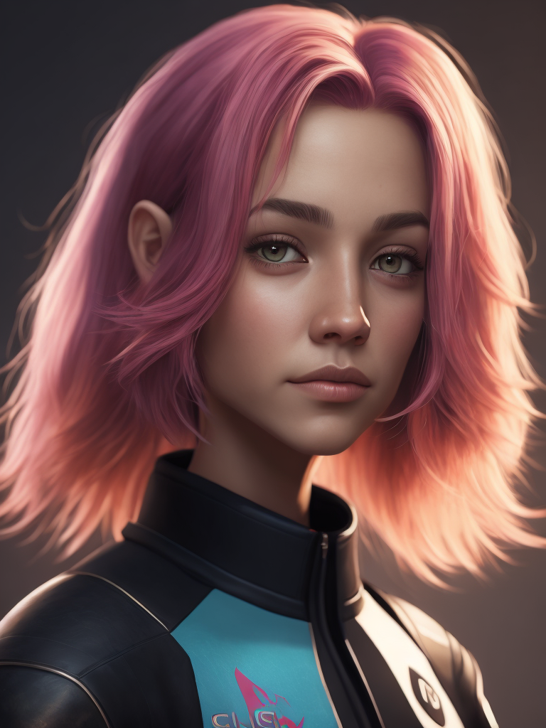 A digital painting of a girl with pink hair, a character portrait by Grillo Demo, featured on cgsociety, space art, artstation hd, behance hd, rendered in unreal engine