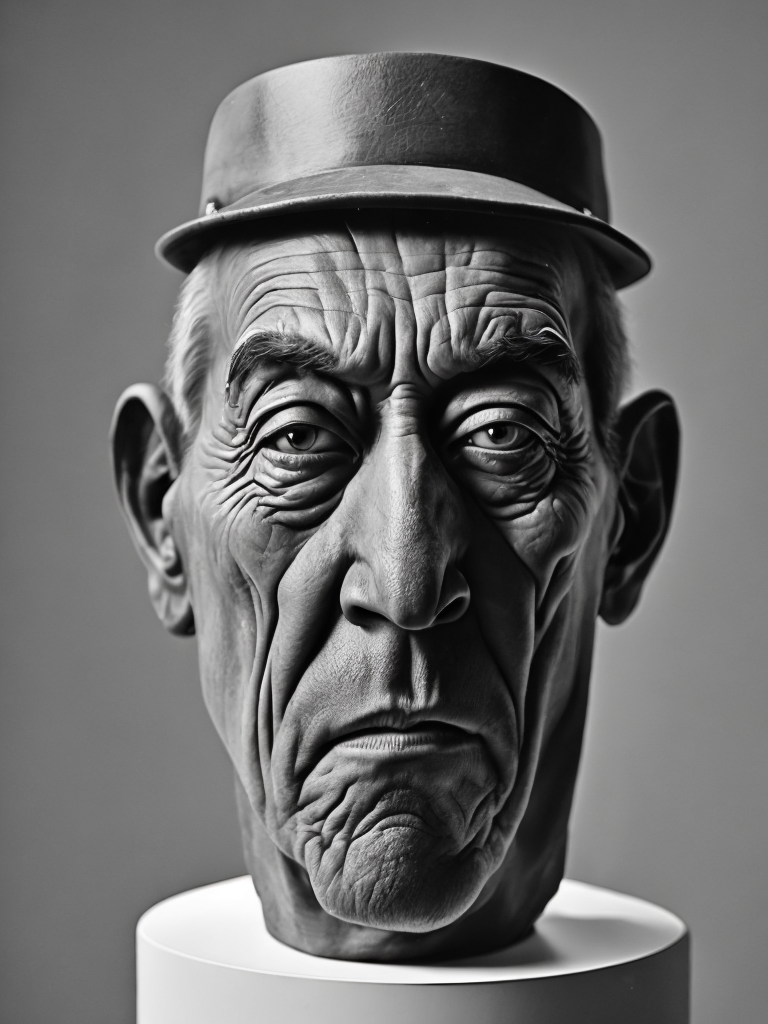 a sad ceramic head in the spirit of peter voulkos and man ray. black & White photo