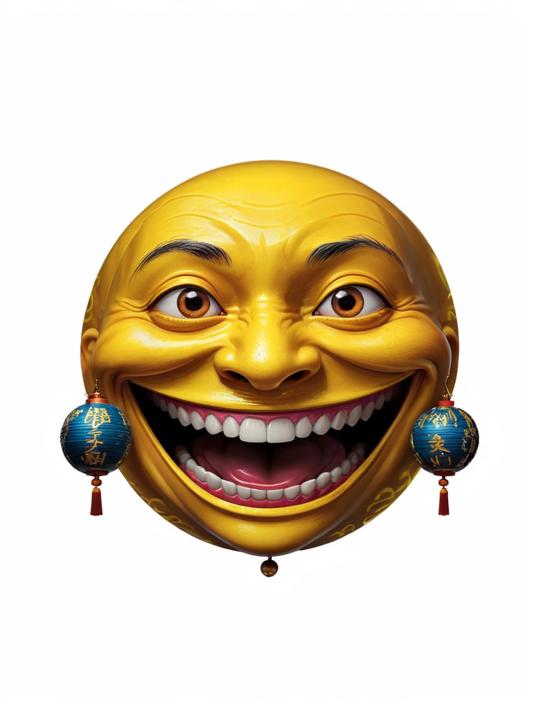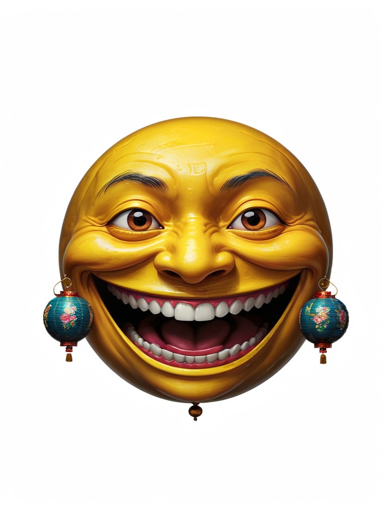 - extreme happiness chinese laughter emoji as human emoji transformation black background happy emotion joyful expression text to image digital artwork creative visualization