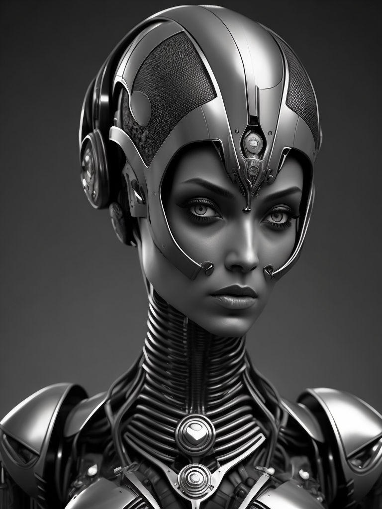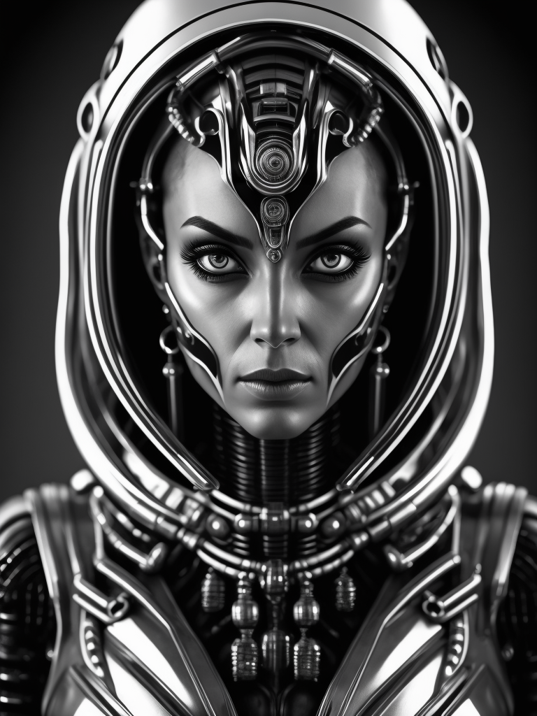 Female robot, Giger style, black and white, high contrast, metal face, many details, slim, stylized bodyhttps://lumenor.ai/terms-of-service/https://lumenor.ai/ai-generated-images-gallery/hPWIc5vdKE/lumenor AIlumenor AI