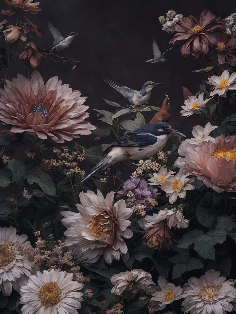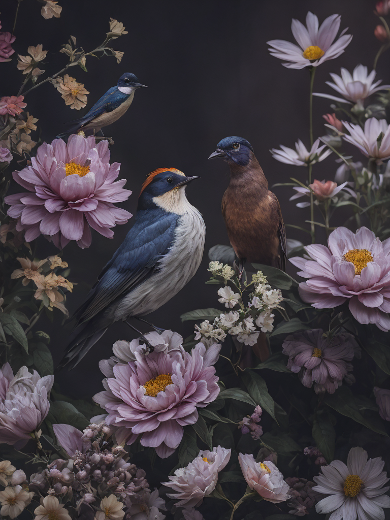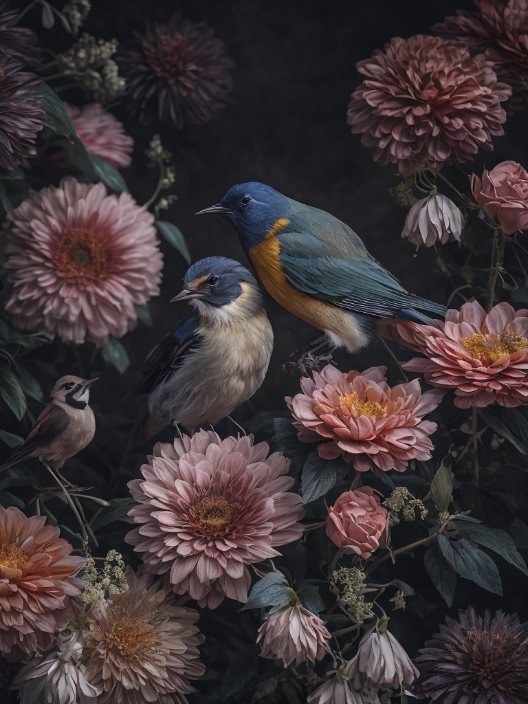 flowers and birds, deep color, sharp on details, vibrance 20, saturation 20https://lumenor.ai/terms-of-service/https://lumenor.ai/ai-generated-images-gallery/hJbeS1olgT/lumenor AIlumenor AI