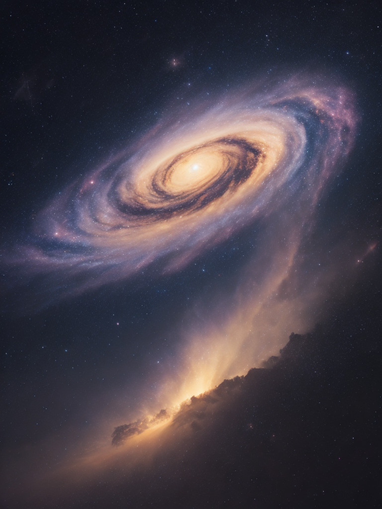 Generate a mesmerizing galaxy filled with swirling stars and distant nebulas