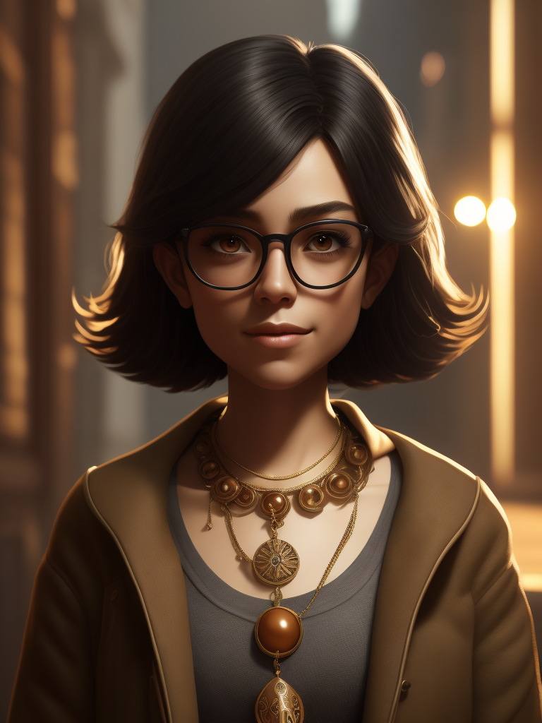 Girl, black hair, Brown eyes, glasses and necklace, Full body, standing centered, Pixar style, 3d style, disney style, 8k, Beautiful, Pixar style girl with black hair brown eyes glasses and necklacehttps://lumenor.ai/terms-of-service/https://lumenor.ai/ai-generated-images-gallery/hJ6MKjtGL6/lumenor AIlumenor AI