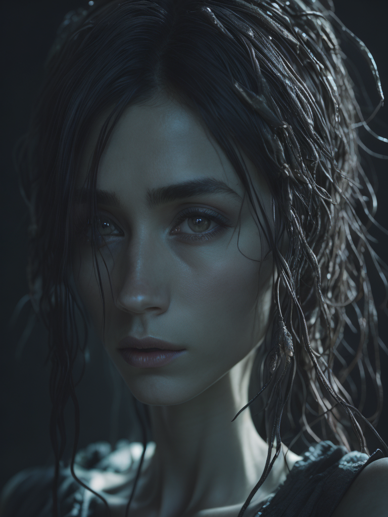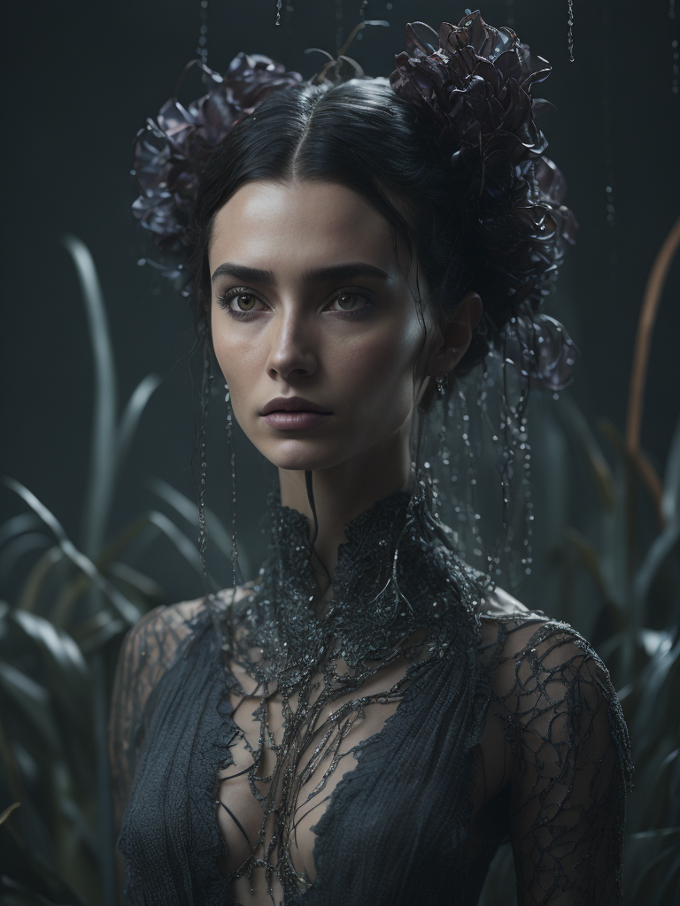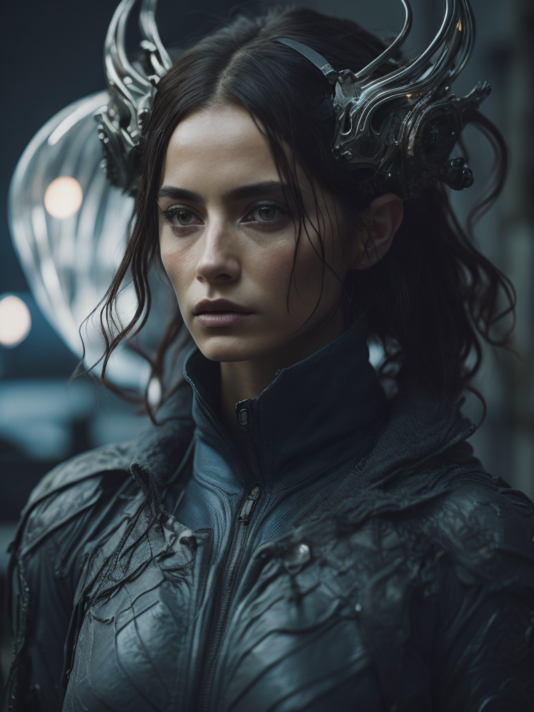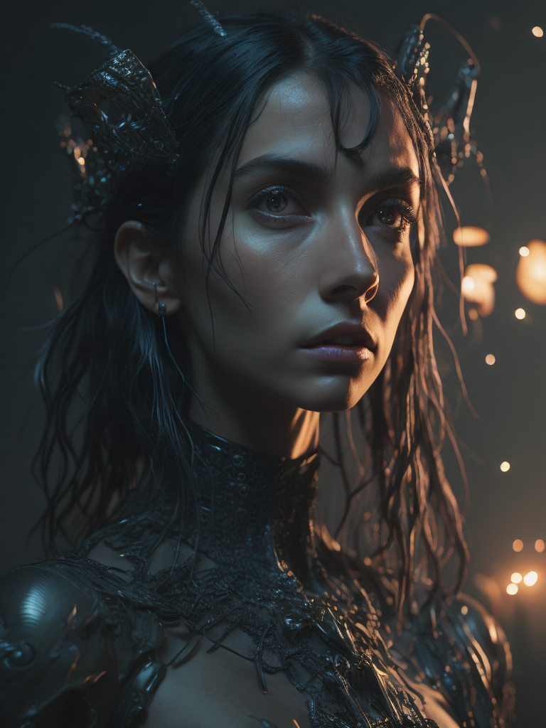 A girl have biomechanical brain, transparent, bioluminiscent creatures, 8k resolution, trending on artstation, cinematic, hyper realism, goddess close-up portrait, chimera orchid jellyfish, 3d