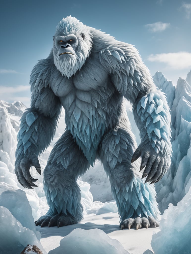 - glacial yeti ice creature frosty 8k detail ice crystals shattering effect frigid habitat text to image frost glistening towering