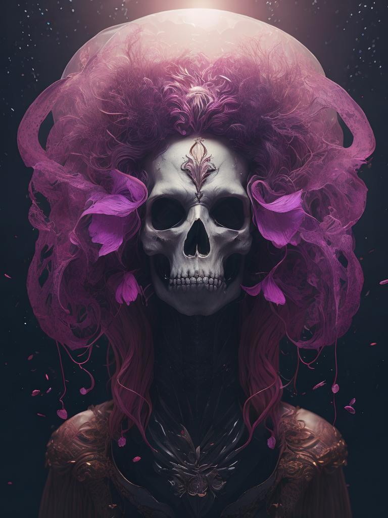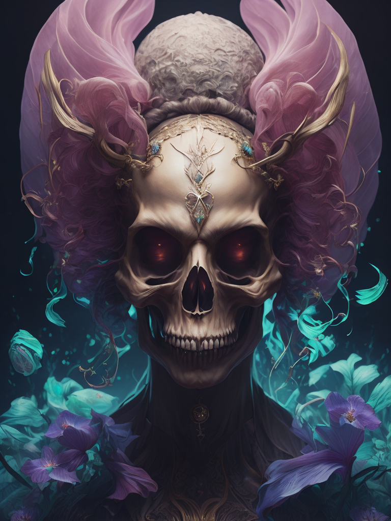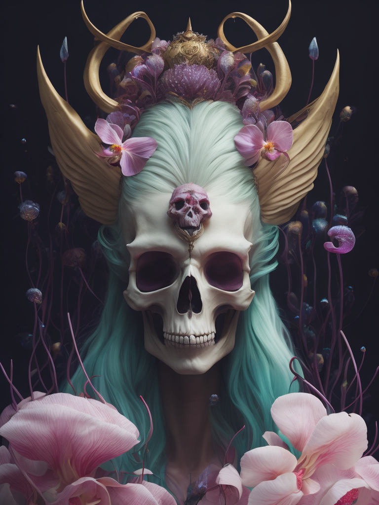 Goddess portrait skull, ram skull, jellyfish, orchid, betta fish, bioluminescent, intricate artwork by tooth wu and wlop and beeple. octane render, trending on artstation, greg rutkowski very coherent symmetrical artwork. cinematic, hyper realism, high detail, octane render,