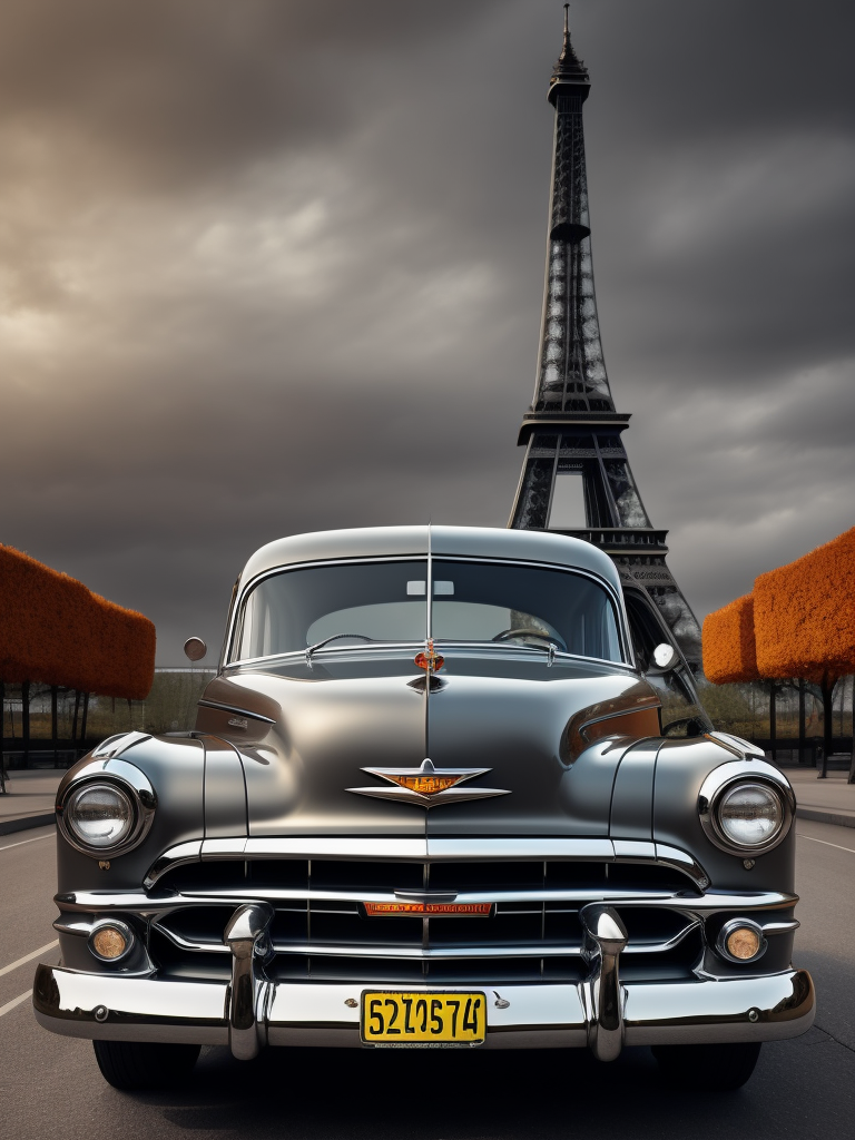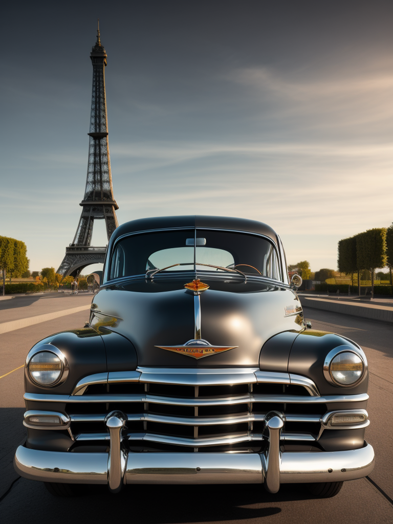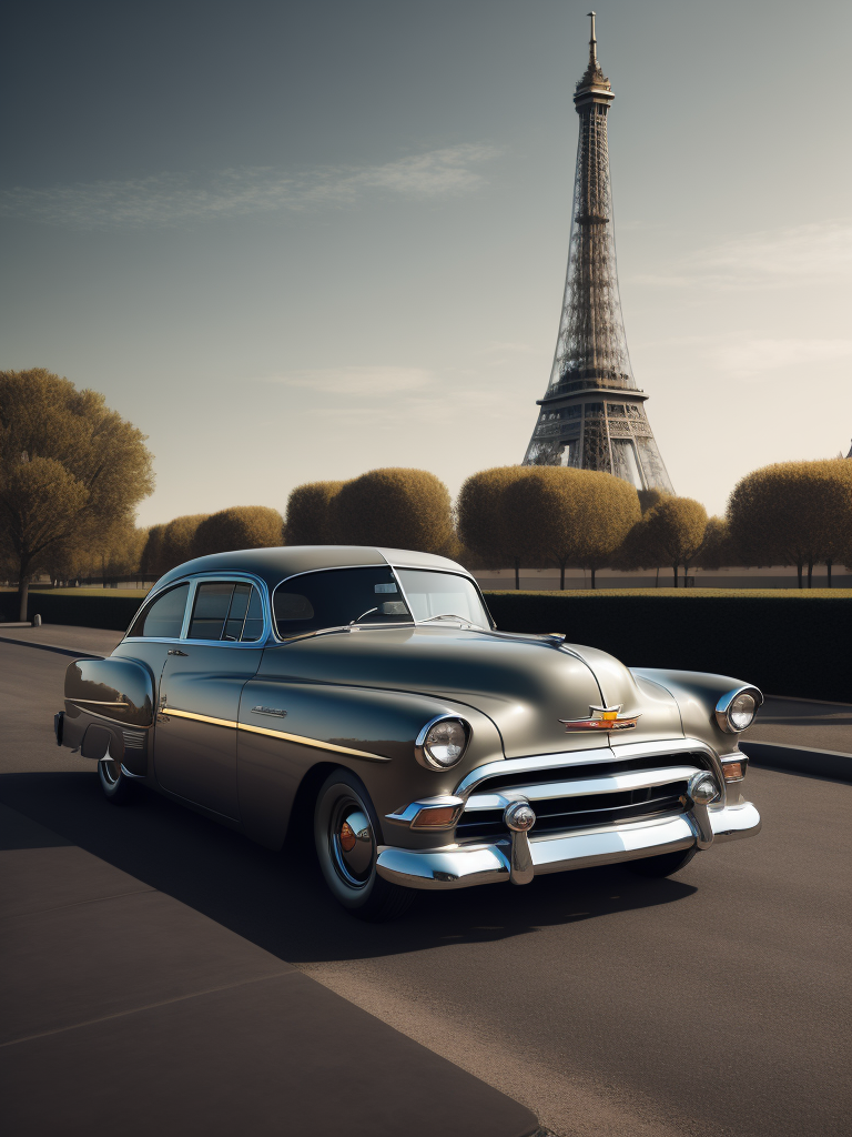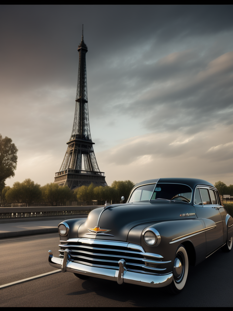 1952 Gray Chevrolet, with the Eiffel Tower in the background, surrealistic, landscape, muted toneshttps://lumenor.ai/terms-of-service/https://lumenor.ai/ai-generated-images-gallery/h75Y2MyMUv/lumenor AIlumenor AI