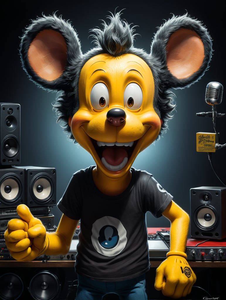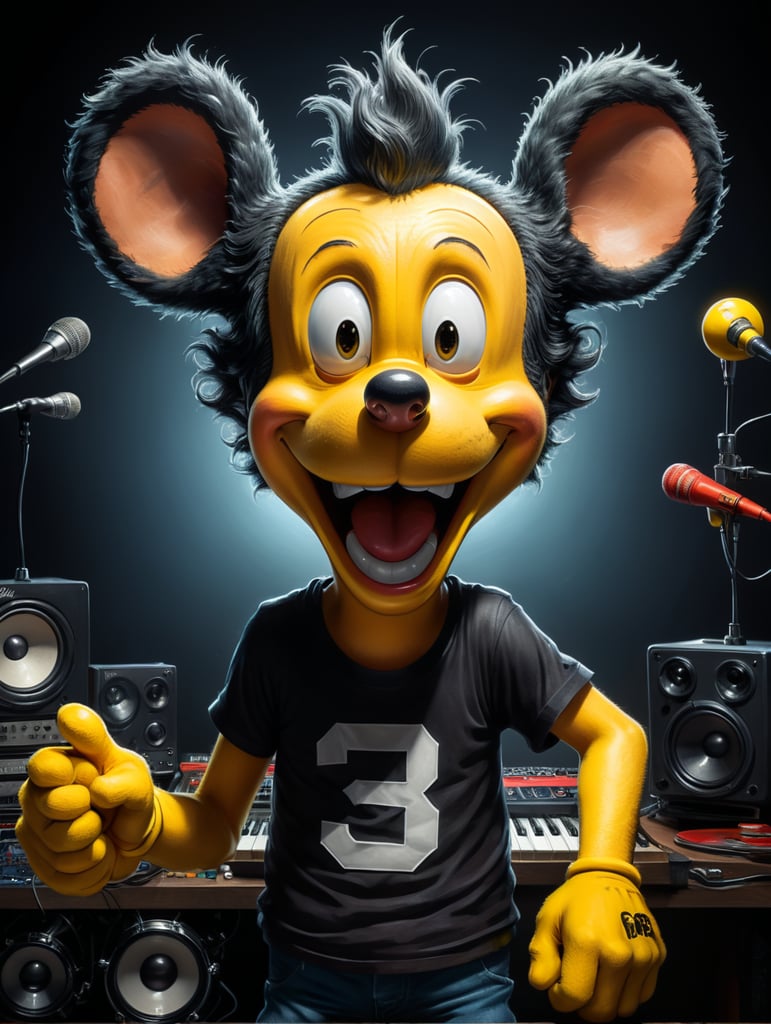 Gustavo Cerati crazy as A cartoon character, such as Mickey Mouse, Bugs Bunny, or Homer Simpson.
