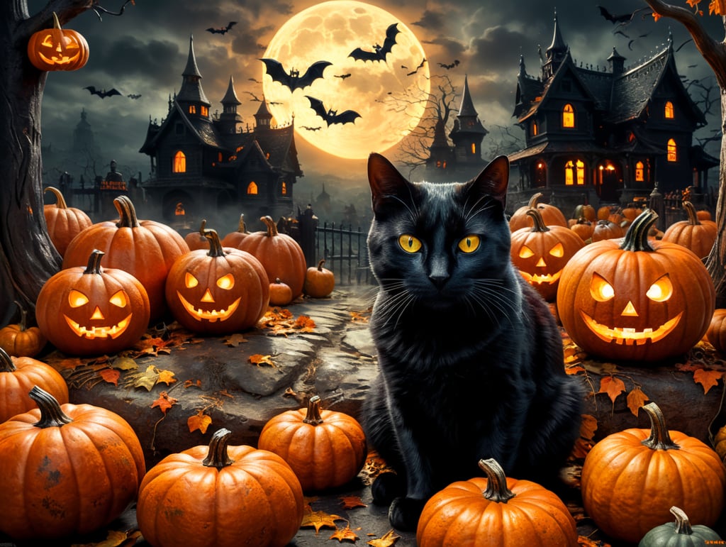 - halloween background black cat pumpkins spooky atmosphere trick or treat autumn vibes spooky black cat halloween decorations jack o' lanterns witching hour