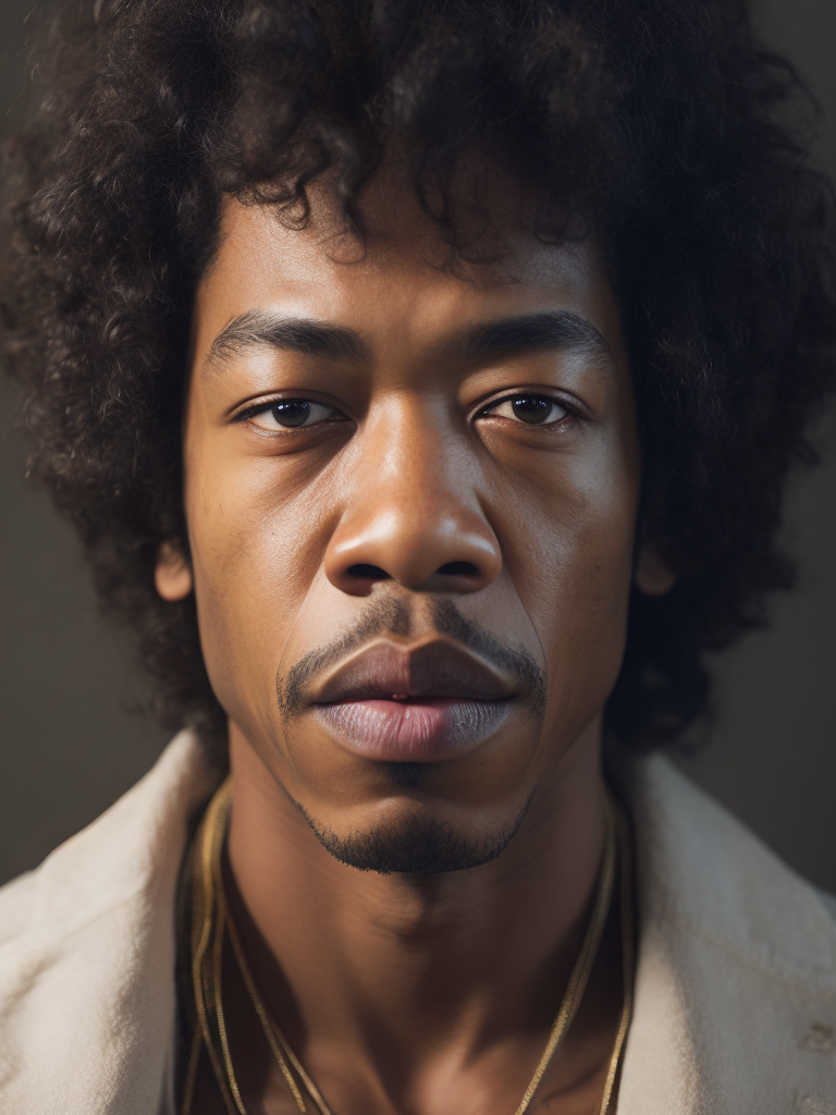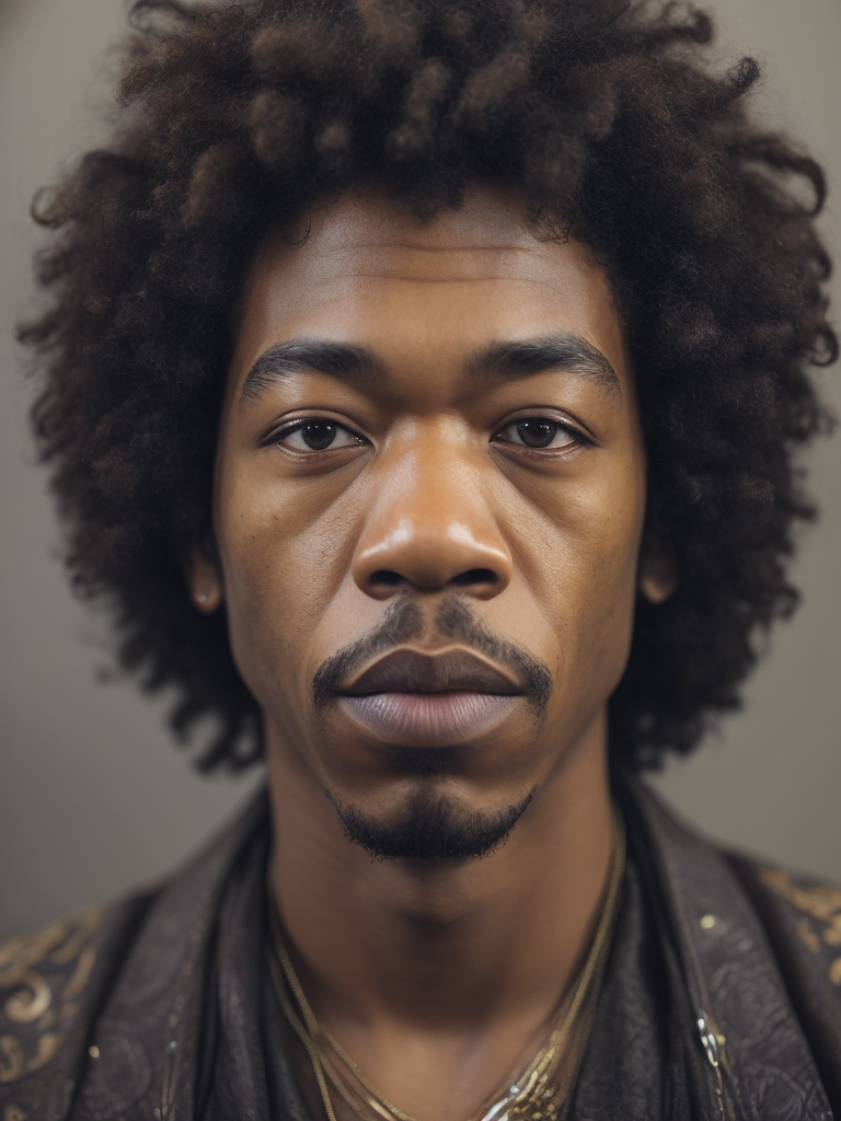 Jimi Hendrix face, front view, photo realistic, hyper realism