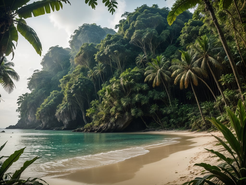 - jungle scenery tropical paradise ocean view sandy beaches wild nature exotic landscape coastal jungle seaside sanctuary nature's splendor jungle oasis