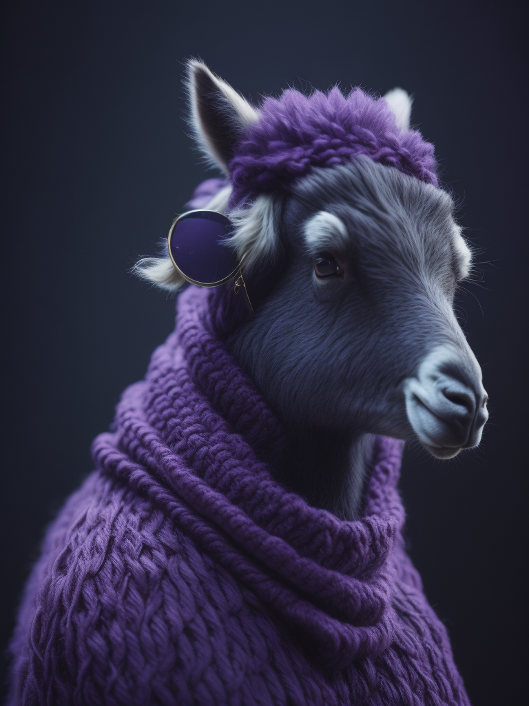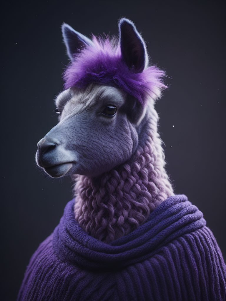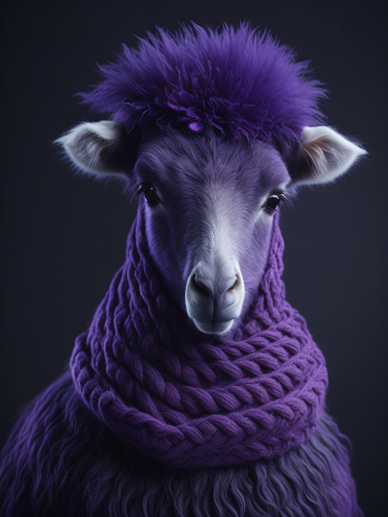 - knitted violet lama text to image text generated creative writing digital art fiber art handmade soft sculpture