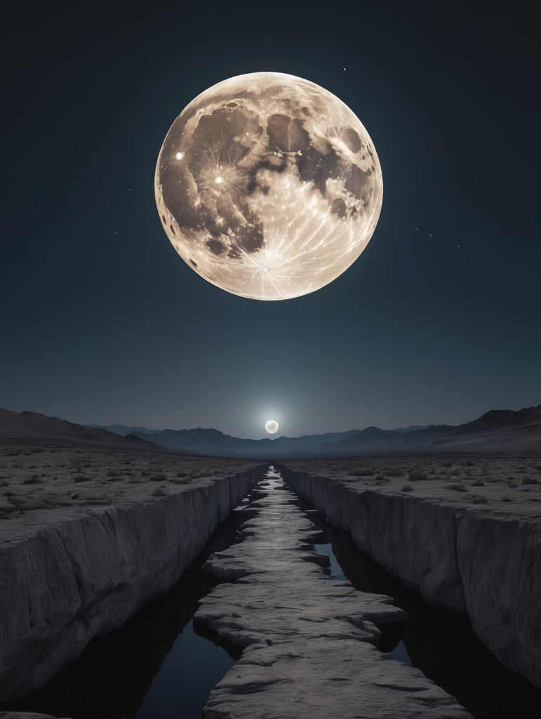 - levitating full moon epic dark place clear sky moonlit landscape celestial beauty night scene lunar fantasy astral illumination mysterious atmosphere dreamlike setting