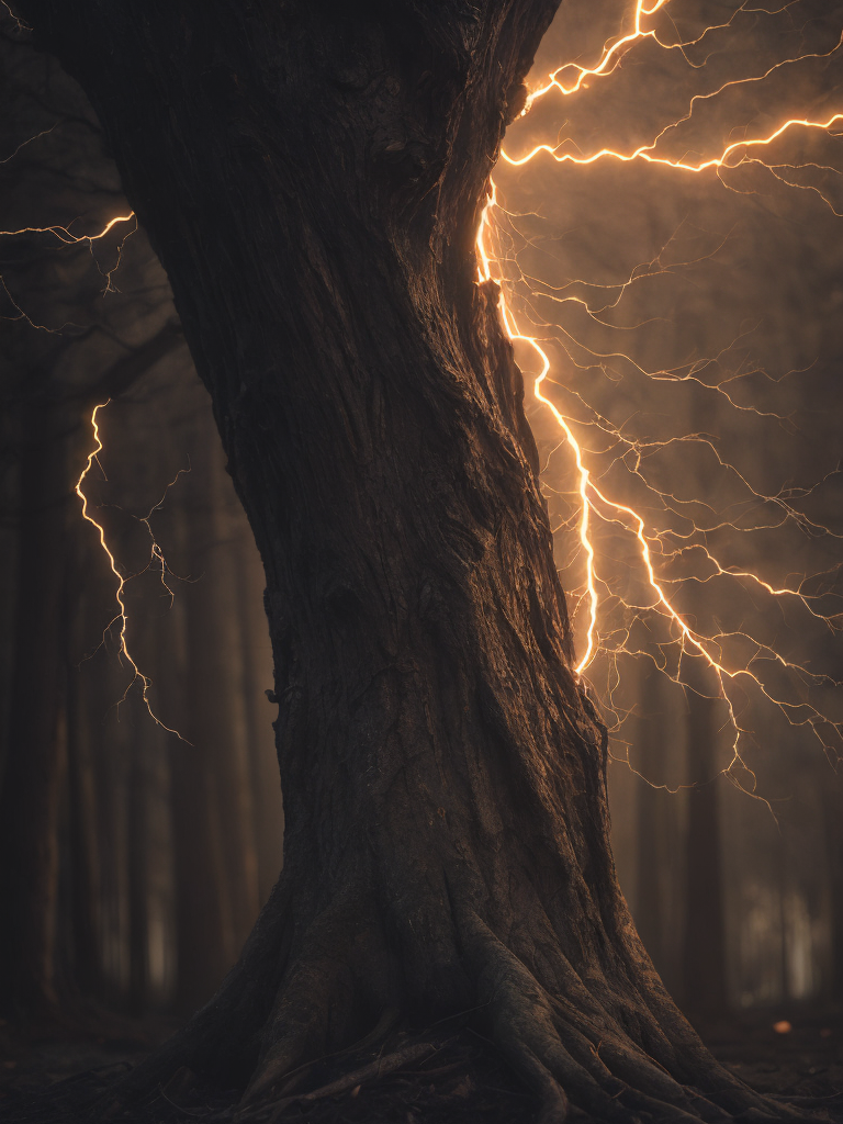 lightning strikes a tree, the tree catches fire