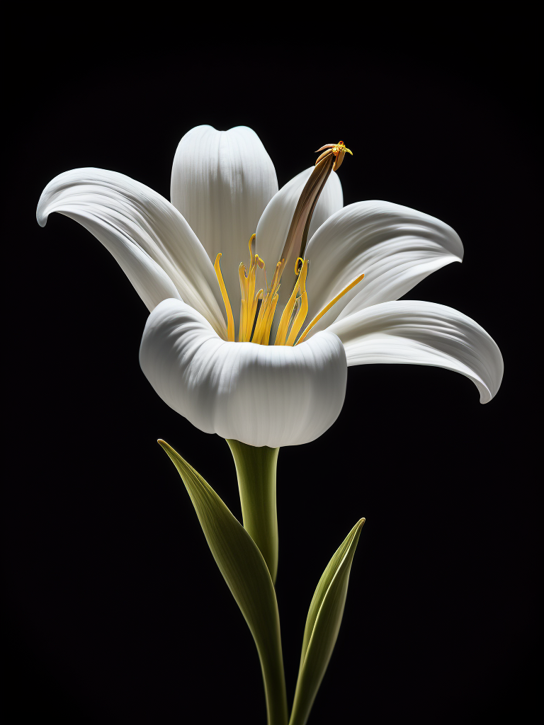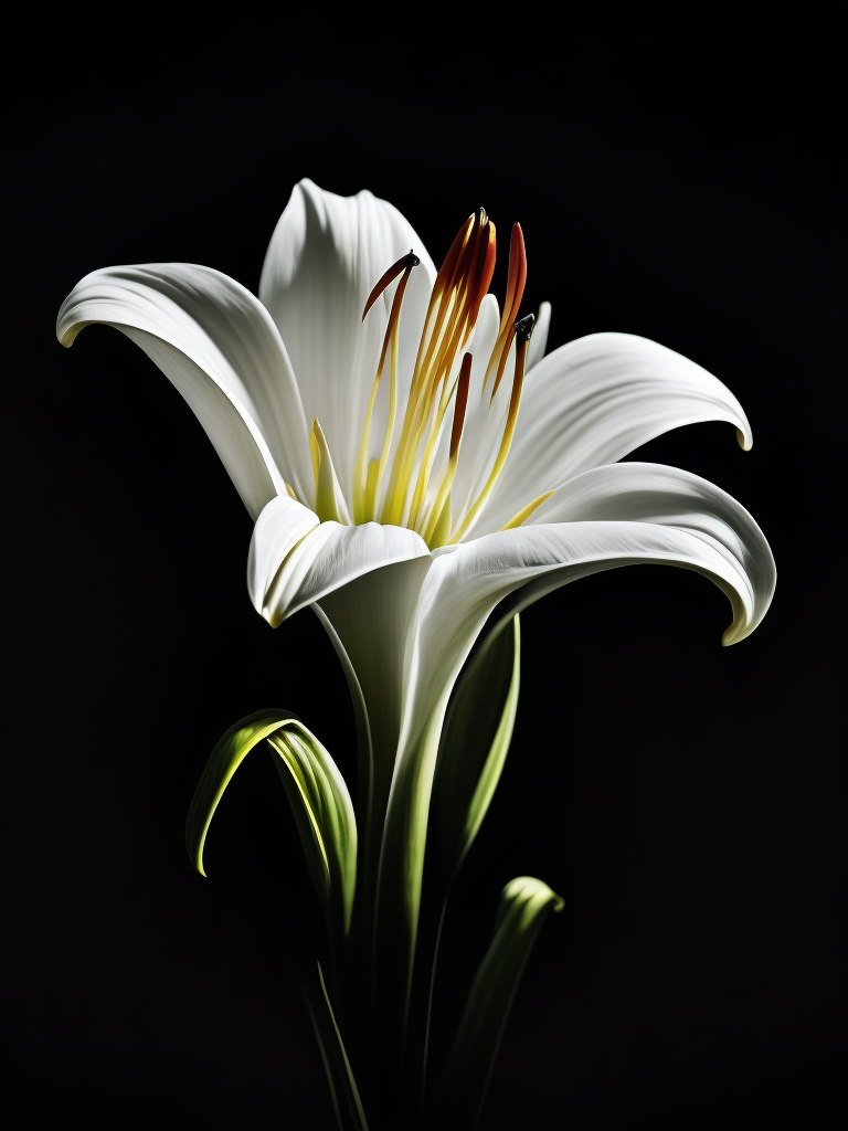 lily flower, black background, deep colors, dark atmosphere, contrasting light