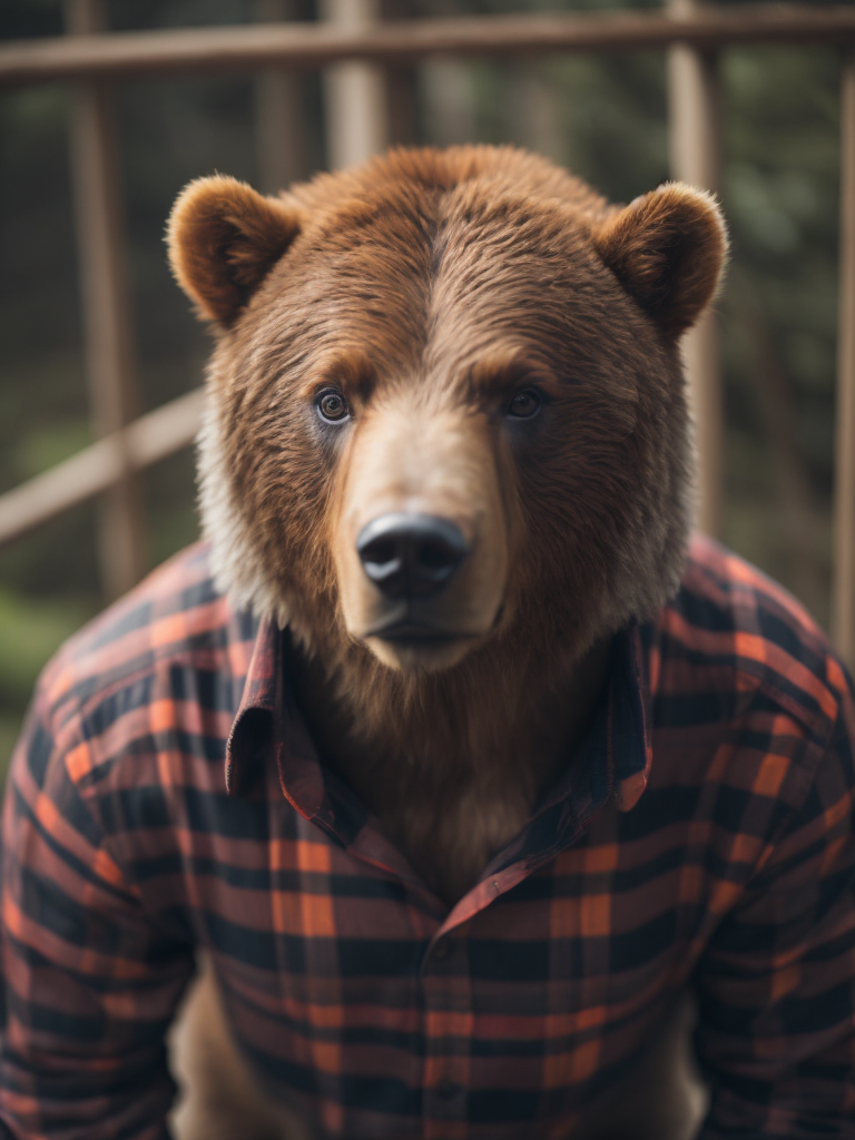 lumberjack bear in a shirt with a red and black cage