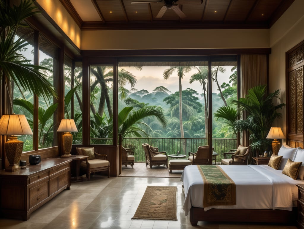 - luxury hotel tropical style jungle views tigers exotic getaway nature retreat five star experience serenity in paradise wildlife encounter escape to luxury