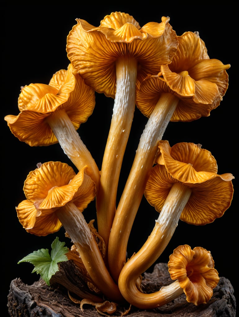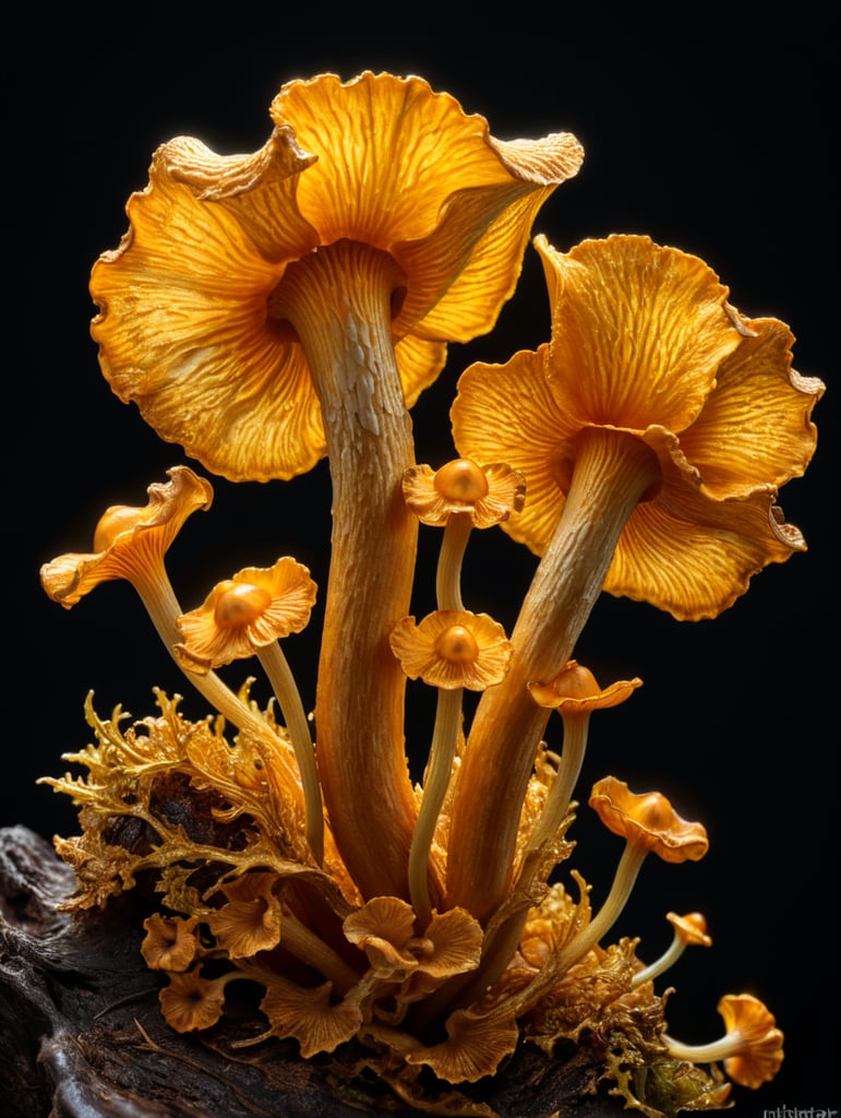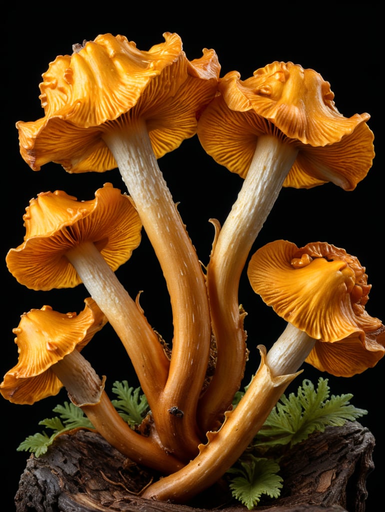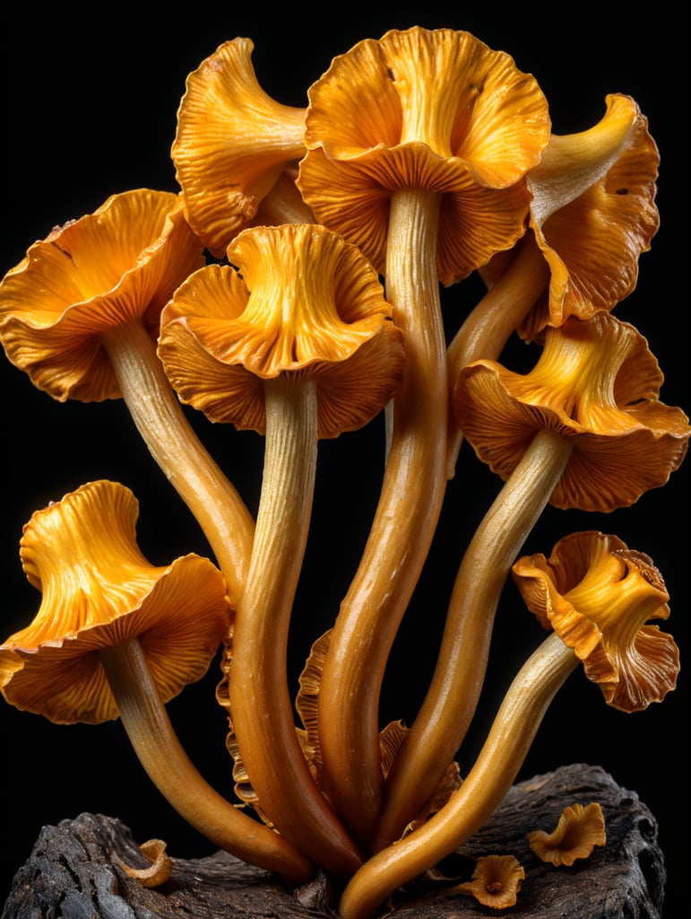 Macro photo of a golden chanterelle mushroom, isolated, black backgroundhttps://lumenor.ai/terms-of-service/https://lumenor.ai/ai-generated-images-gallery/htvxYSHsyz/lumenor AIlumenor AI