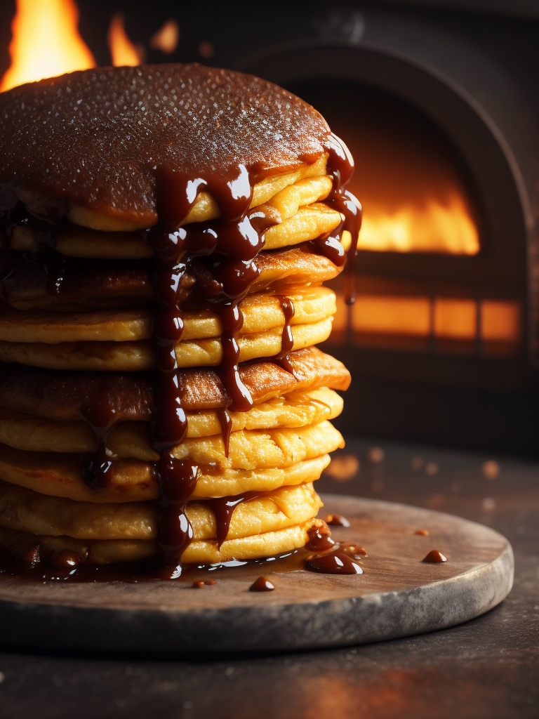 macro photo of a slice of delicious pan cake in front of a stone oven, fire oven, light it fire, food photography, close up, advertising photography, soft light, extremely detailed, beautiful, artistic, hyperrealistic, octane render, cinematic light, dramatic lights, masterpiace, light brazen