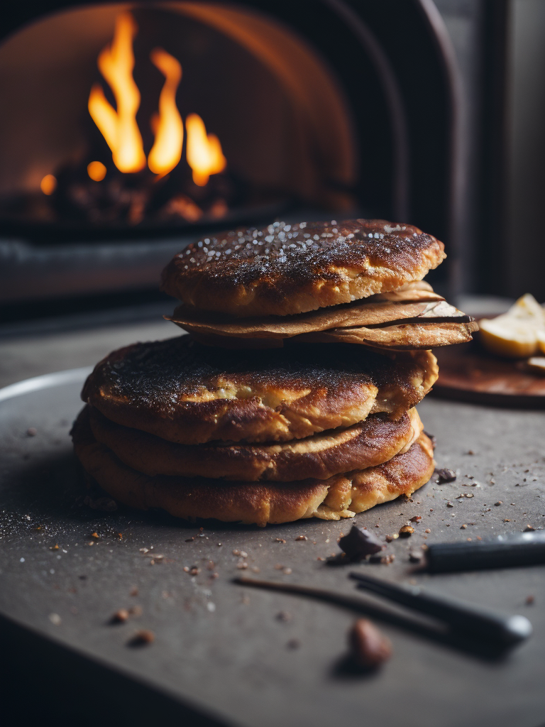 macro photo of a slice of delicious pan cake in front of a stone oven, fire oven, light it fire, food photography, close up, advertising photography, soft light, extremely detailed, beautiful, artistic, hyperrealistic, octane render, cinematic light, dramatic lights, masterpiace, light brazen