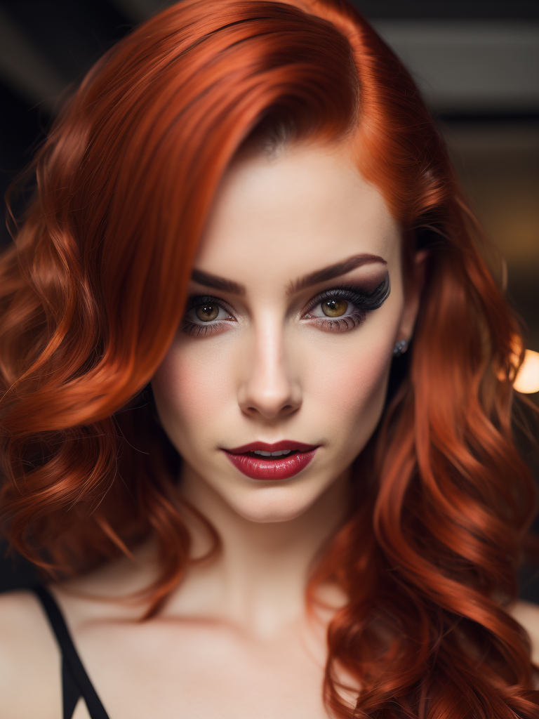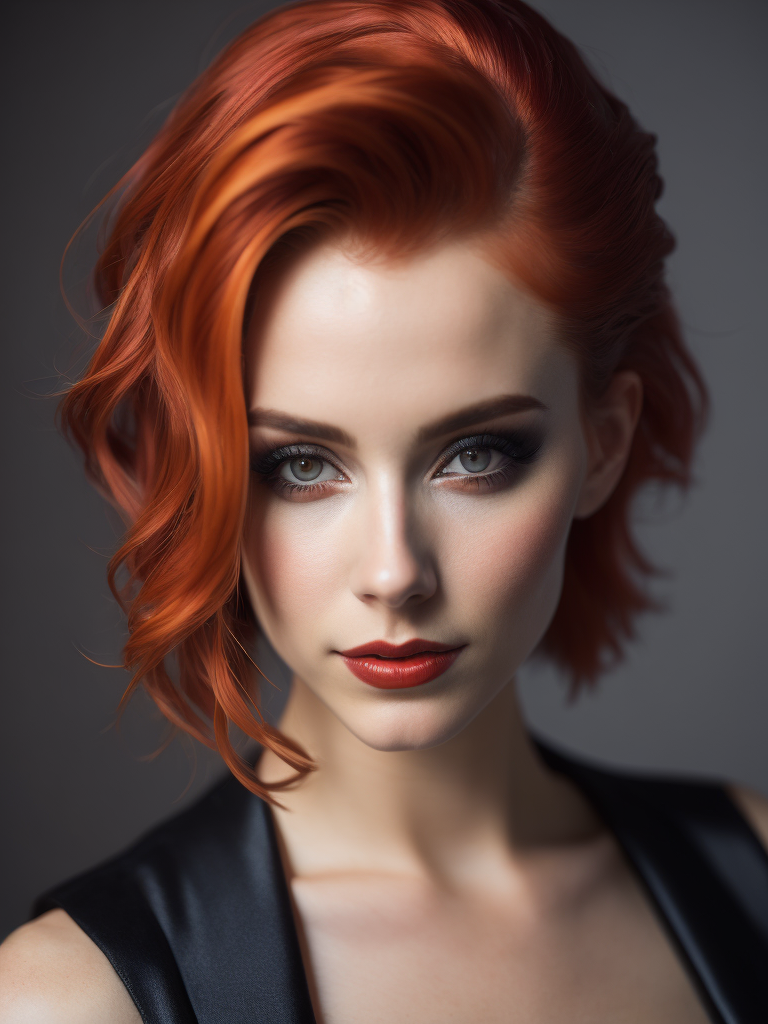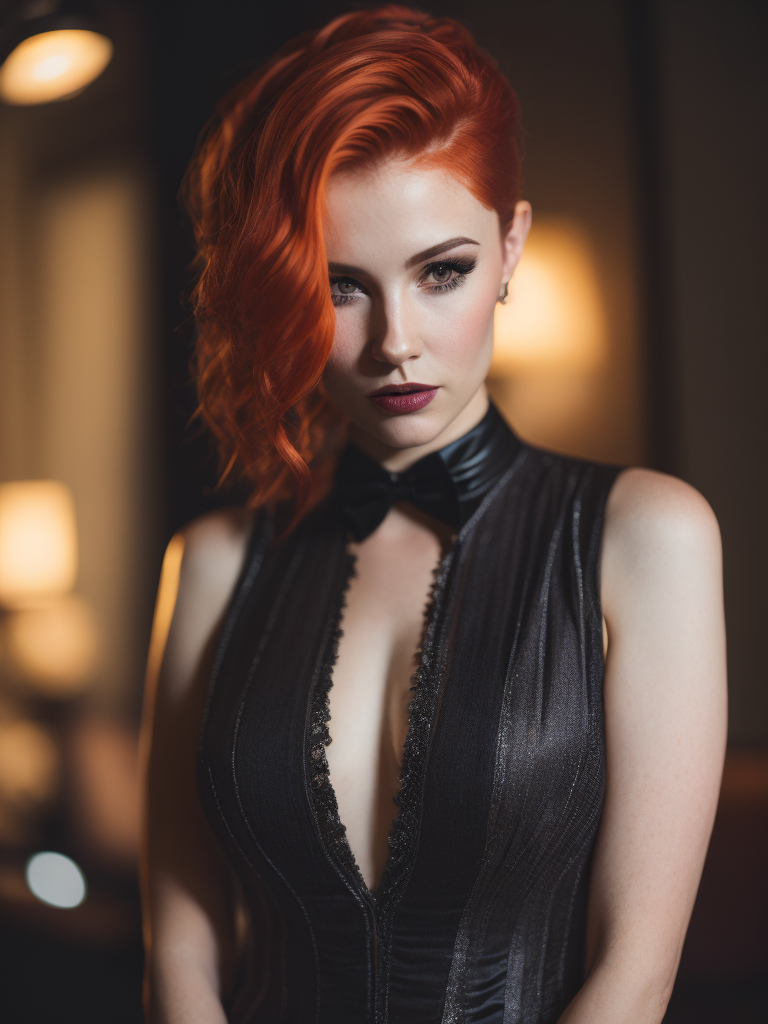 madelyn cline, red hair with black stripes, twenty years, cyberpunk, burlesque dancer, haute couturehttps://lumenor.ai/terms-of-service/https://lumenor.ai/ai-generated-images-gallery/hcWUqEVmYv/lumenor AIlumenor AI