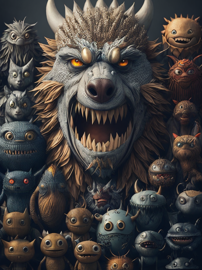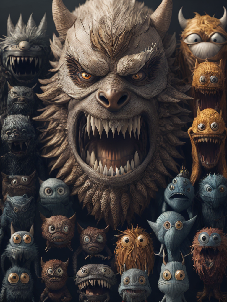 Many monsters, doodle art style, colorful, funny