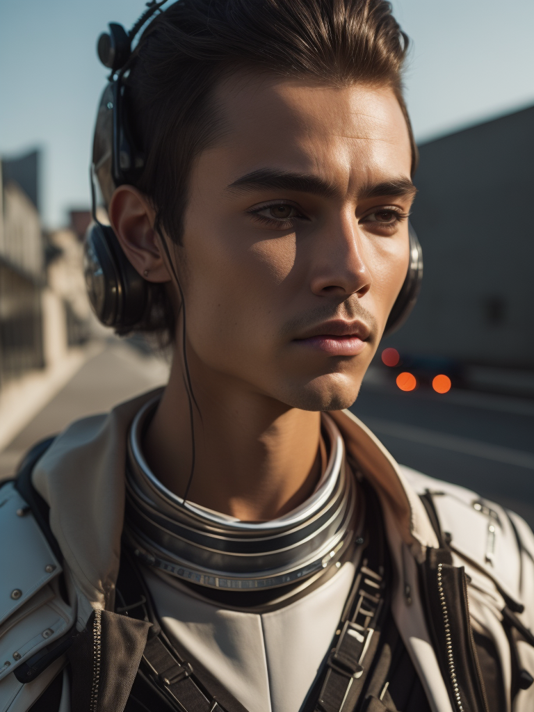 masterpiece, best quality, detailed, 8k wallpaper, far shot, full body, man with a fantastic cyberhelmet, wearing white techwear jacket, jumpsuit, on the street, thin waist, blacklight,https://lumenor.ai/terms-of-service/https://lumenor.ai/ai-generated-images-gallery/h2EUFPEteM/lumenor AIlumenor AI