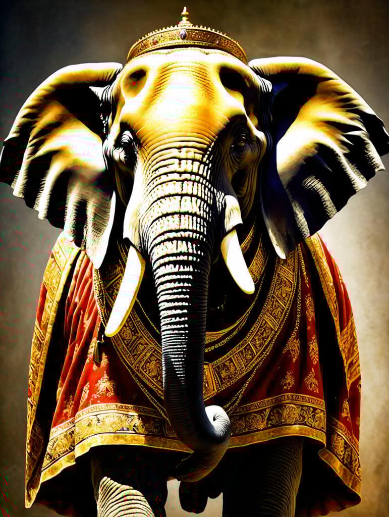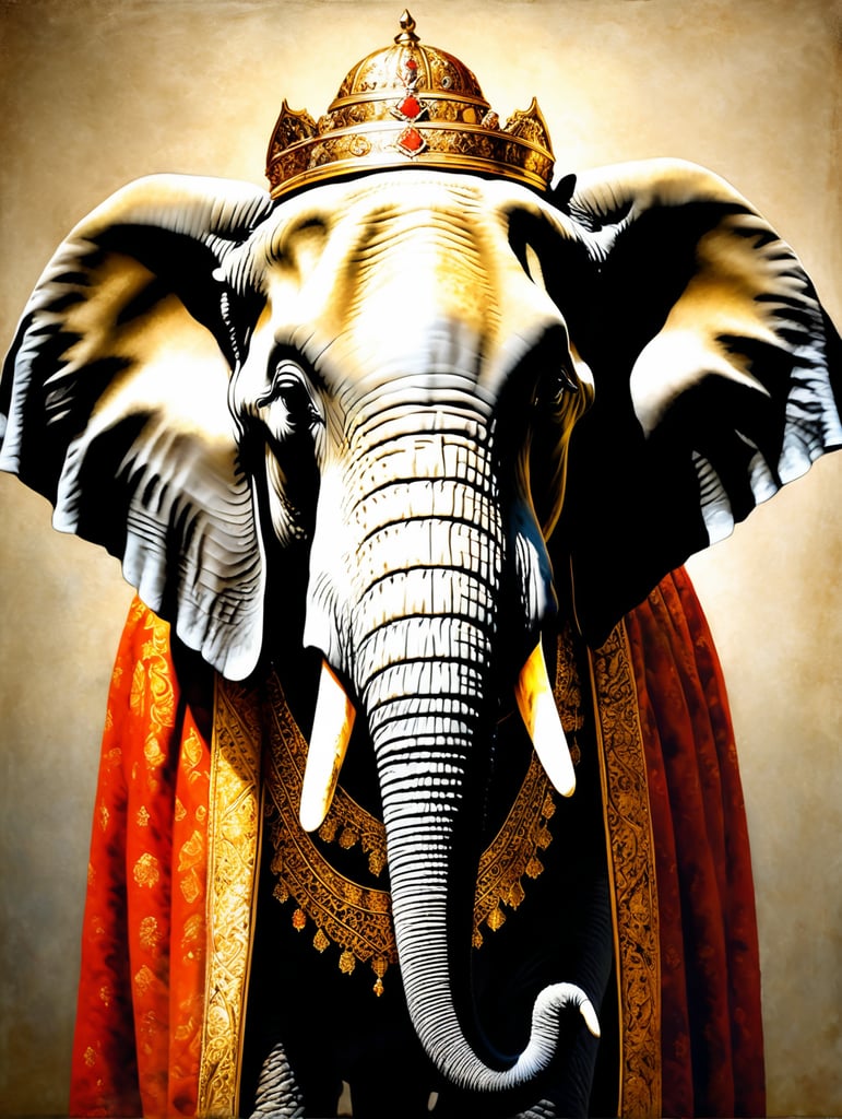 - rembrandt van rijn masterpiece painting portrait of an elephant renaissance painting style 2/3 view simple background waist upwards highly detailed high contrast typical clothes of the time