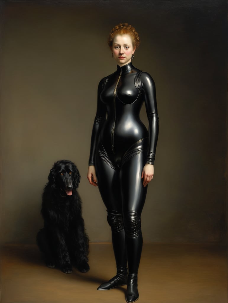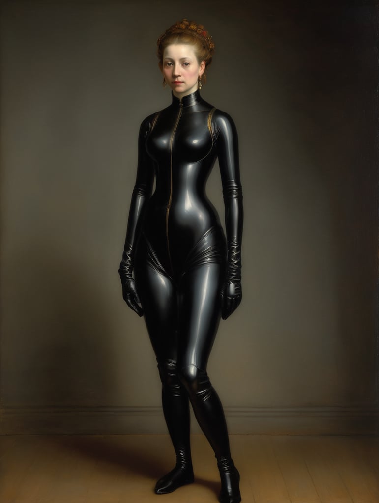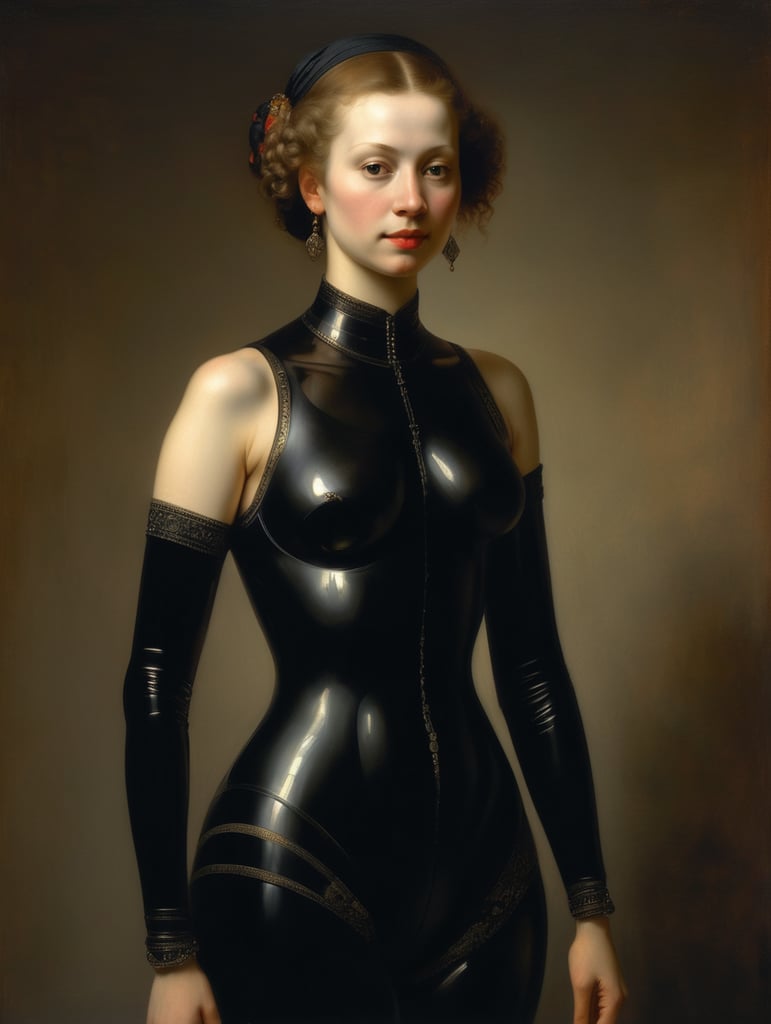 A masterpiece painting by Rembrandt Van Rijn, a woman stand with a black 1600 bodysuithttps://lumenor.ai/terms-of-service/https://lumenor.ai/ai-generated-images-gallery/hK34gZYGZz/lumenor AIlumenor AI