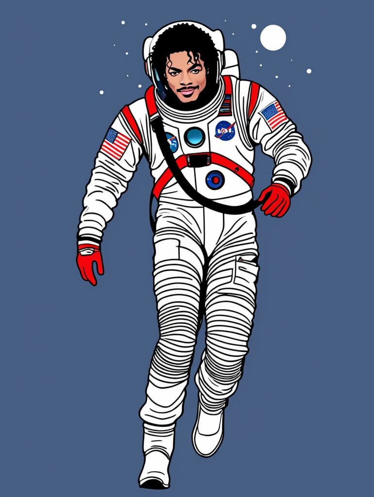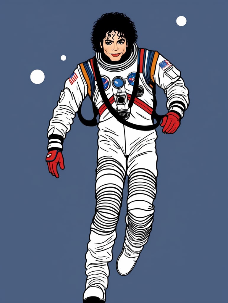 Michael Jackson wearing an astronaut suit while doing the moonwalk. Simple line drawing with 5 colors.https://lumenor.ai/terms-of-service/https://lumenor.ai/ai-generated-images-gallery/hfeOJxqu3U/lumenor AIlumenor AI