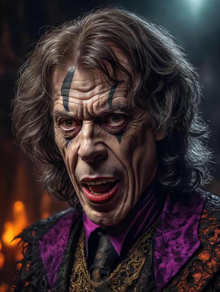 - mick jagger creepy evil character spooky halloween costume vivid colors saturated colors contrast color halloween character mick jagger in costume sinister mick jagger colorful halloween attire